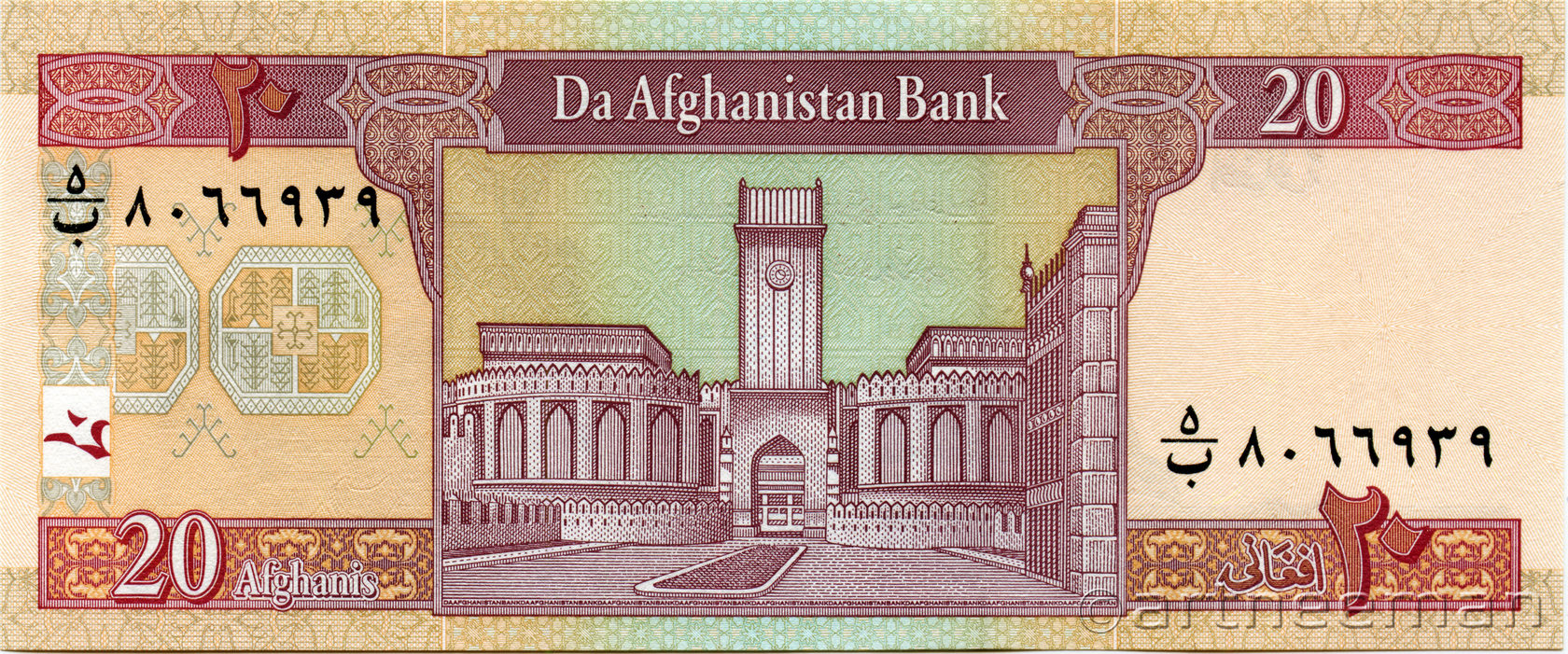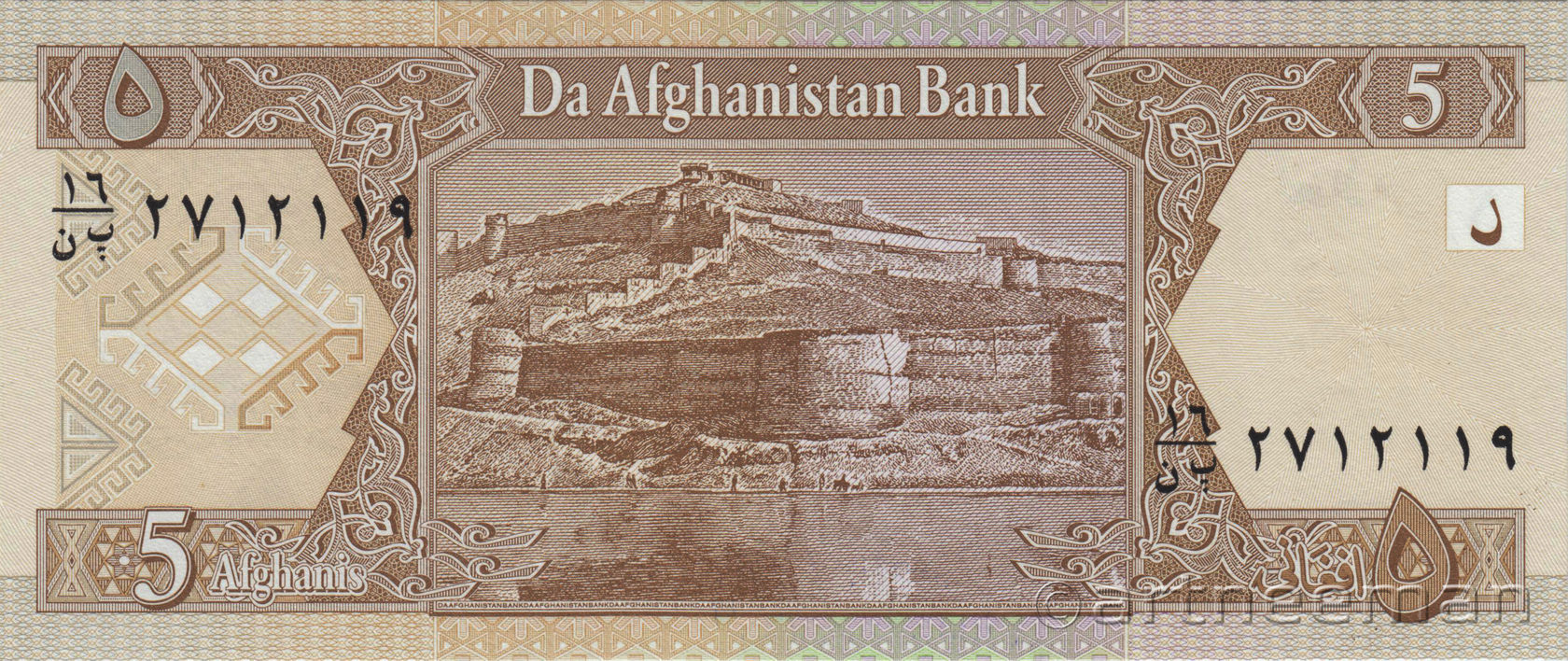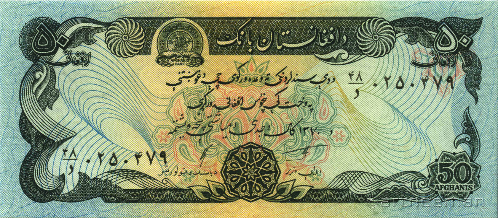 Водяной знак: Эмблема Национального Банка Афганистана