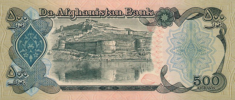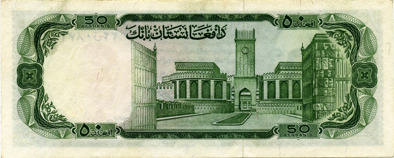 Оборотная сторона: Арг-э-Шахи - Цитадель Короля, построенная в конце XIX века Амиром (Королем) Абдулом Рахман-ханом. В настоящее время там рассположены: Гул Хана, служащая канцелярией президента Ашрафа Гани Ахмадзайя и протокольная канцелярия президента; Канцелярия главы администрации президента; Здание советника по национальной безопасности; и офисы пресс-секретаря президента.