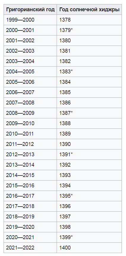 Соответствие годов календаря Хиджры григорианскому календарю