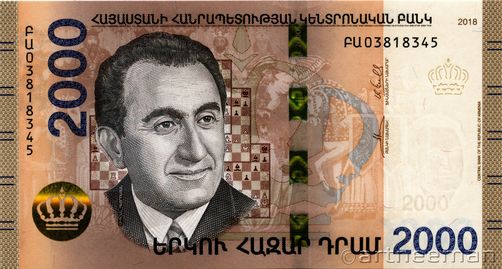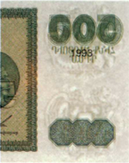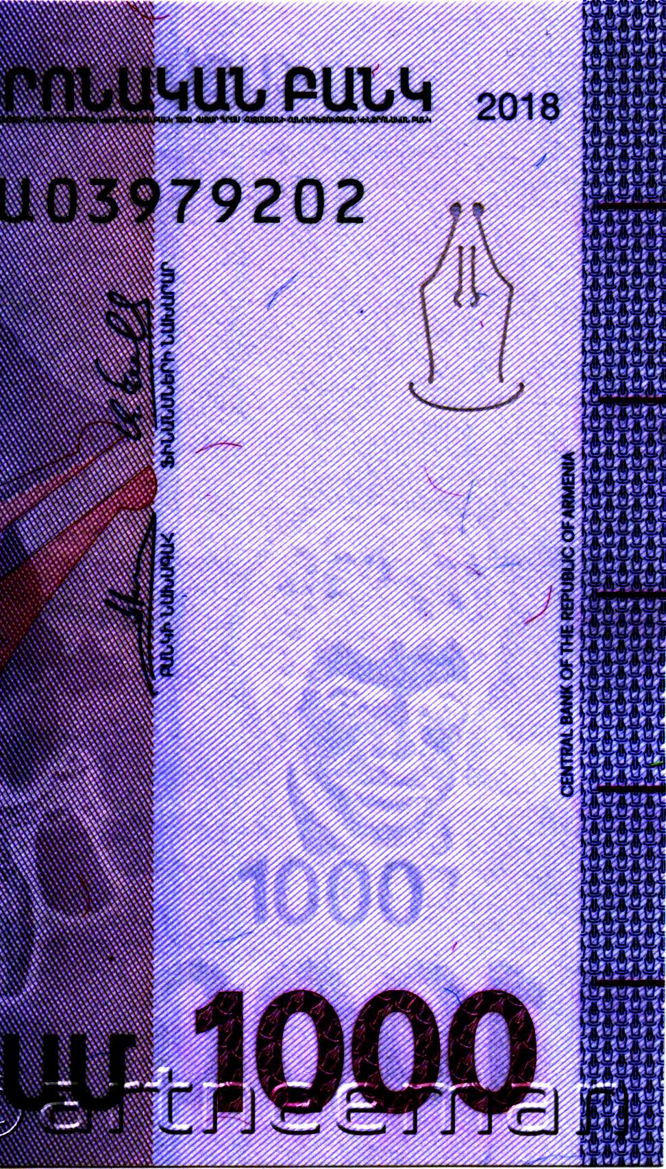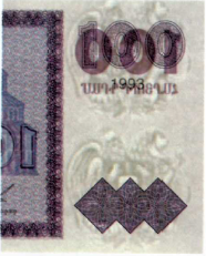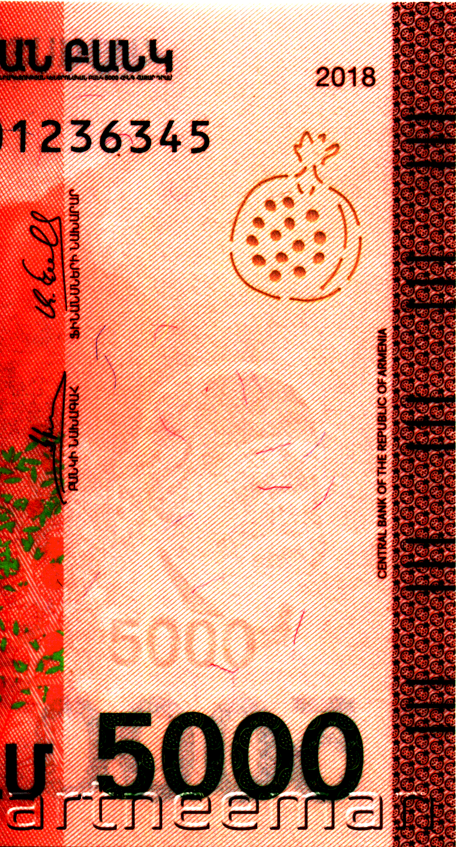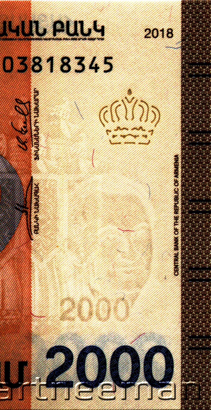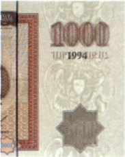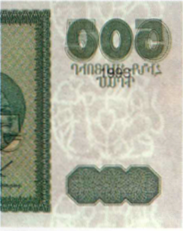 Водяной знак: Многотоновый водяной знак в виде Портрета Тиграна Петросяна и двутоновый водяной знак в виде номинала банкноты.