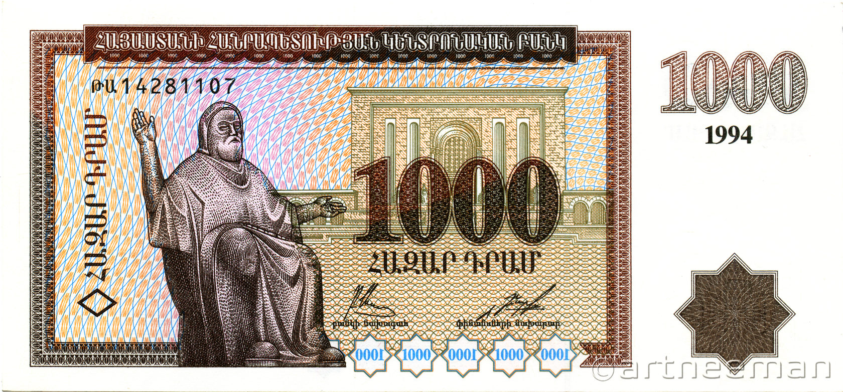 Банкнота серии 1993-1995 Issue, выпуск 1994 года (серия ԶԱ)