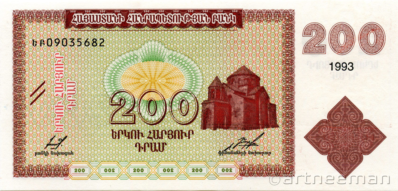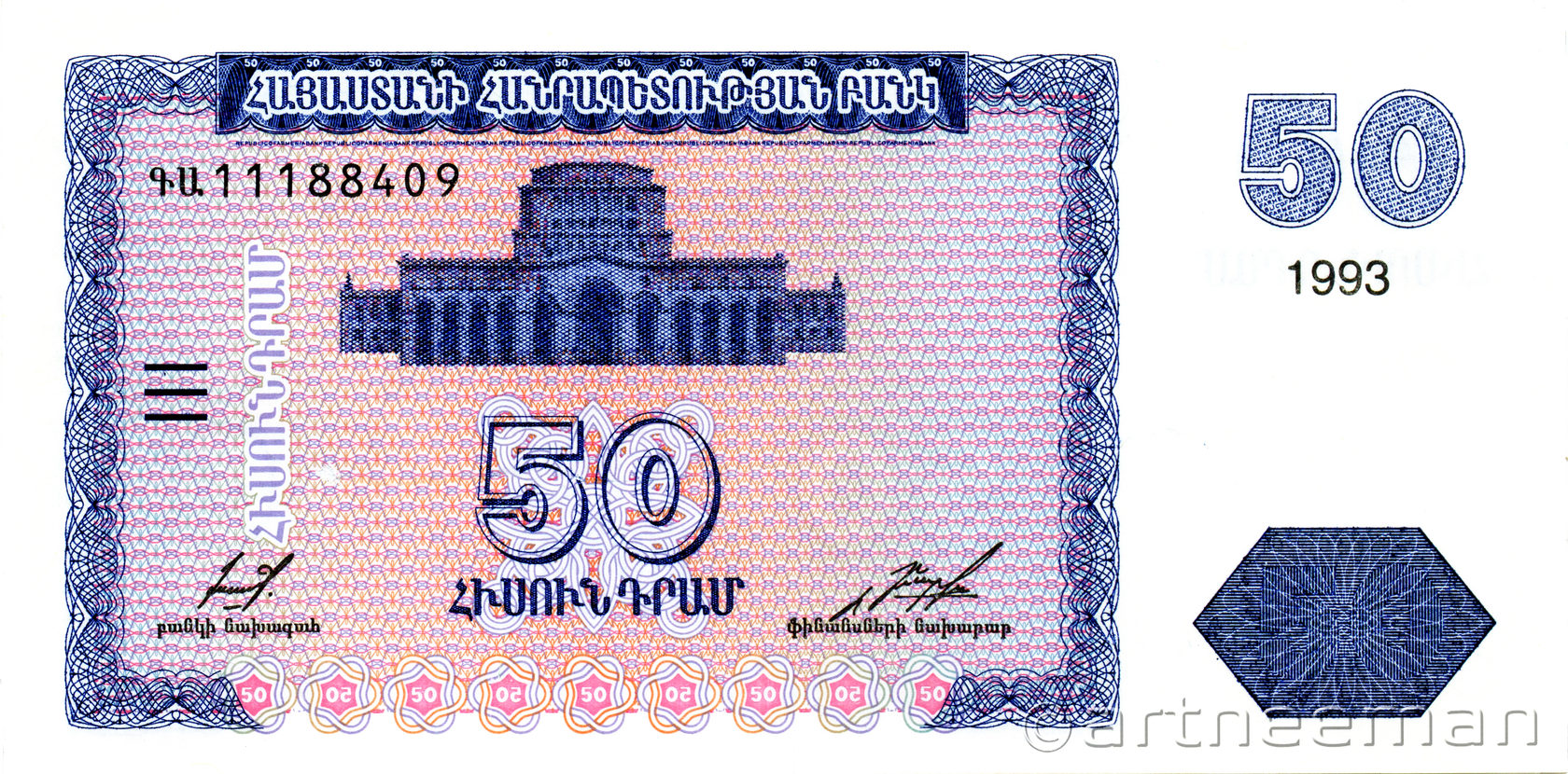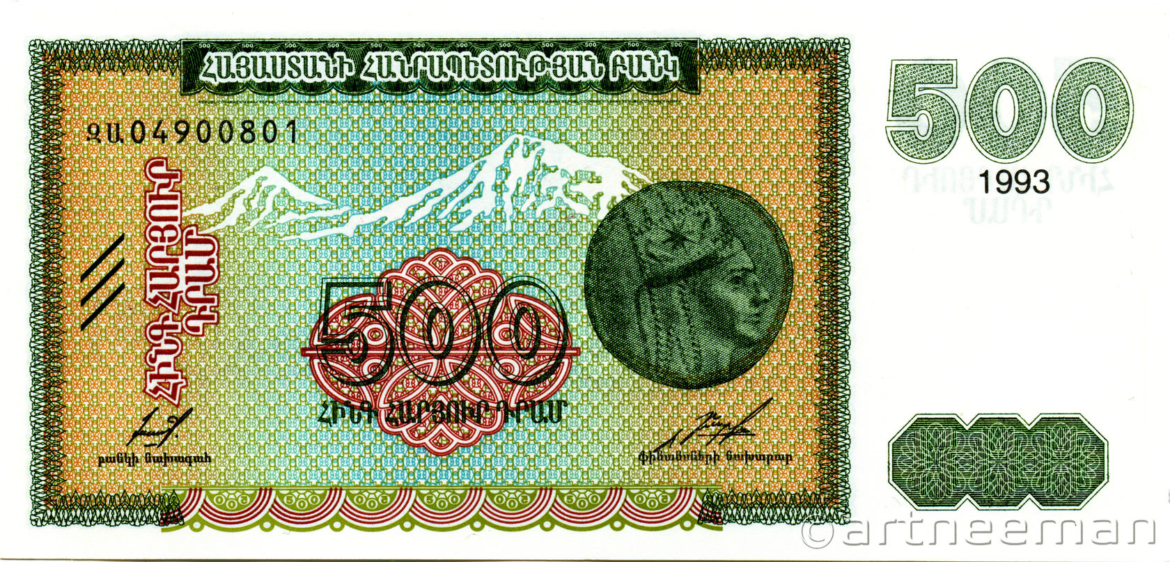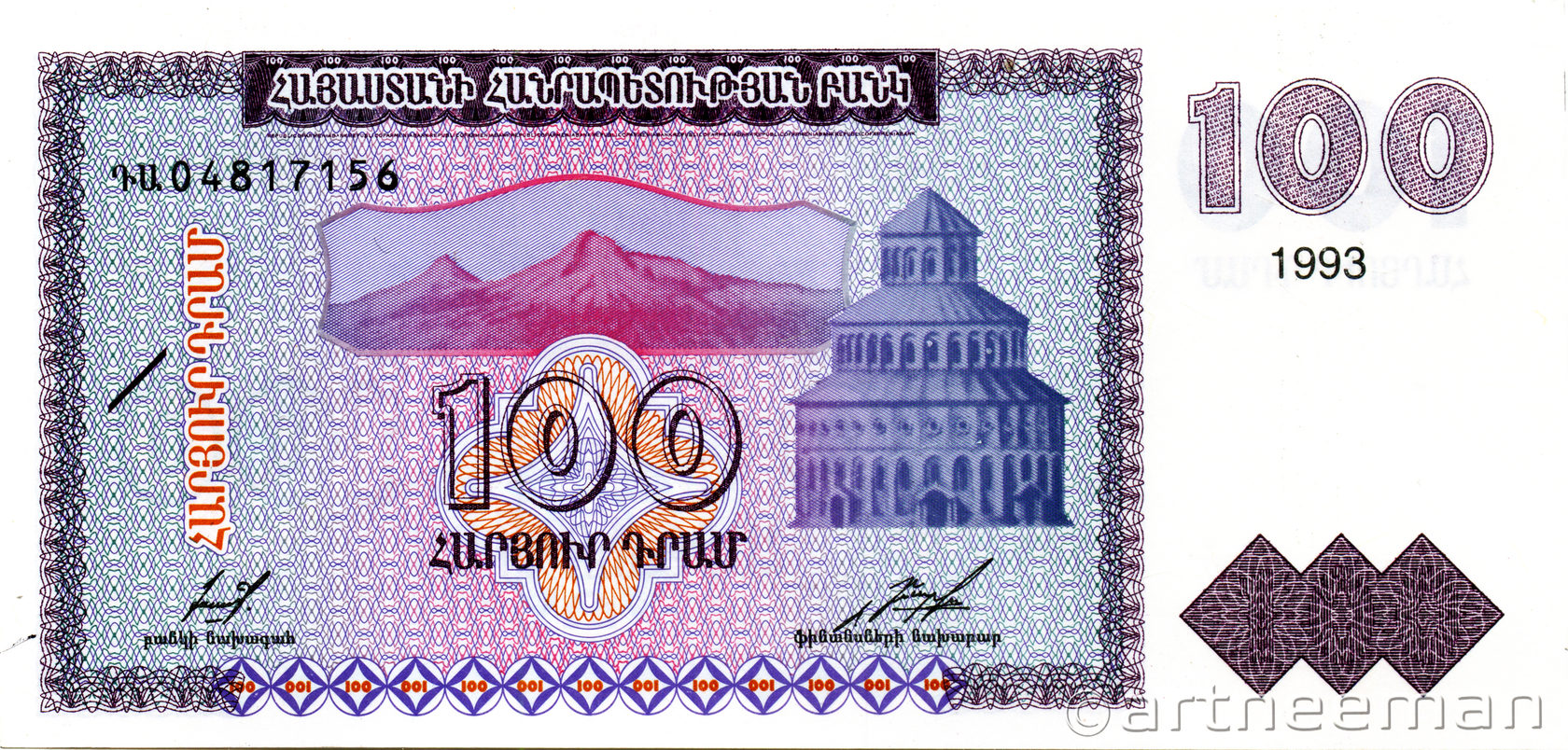 Банкнота серии 1993-1995 Issue, выпуск 1993 года (серия ԵԱ)
