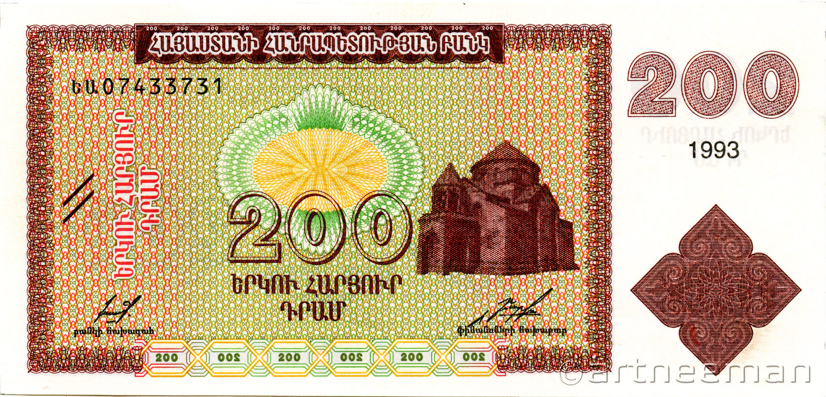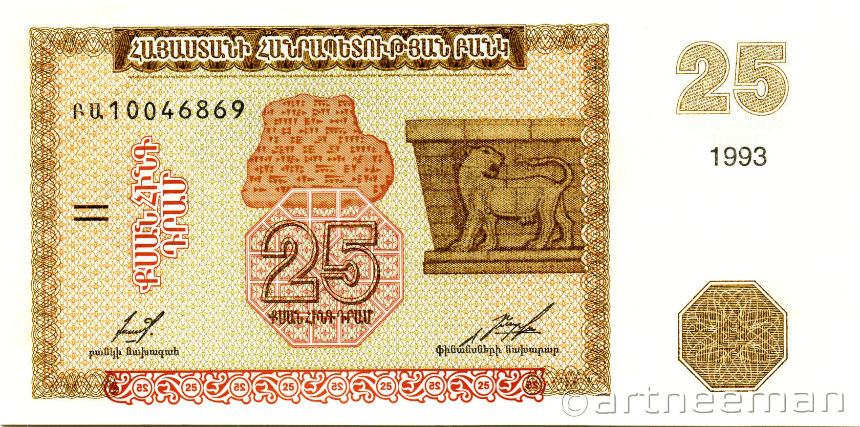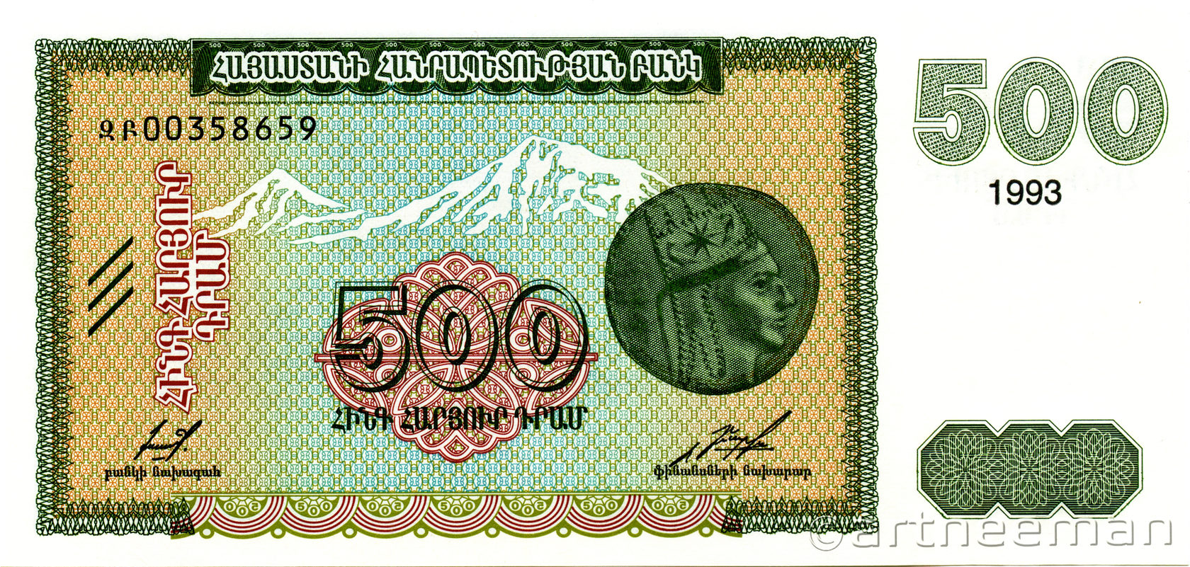 Банкнота серии 1993-1995 Issue, выпуск 1993 года (серия ԵԱ)