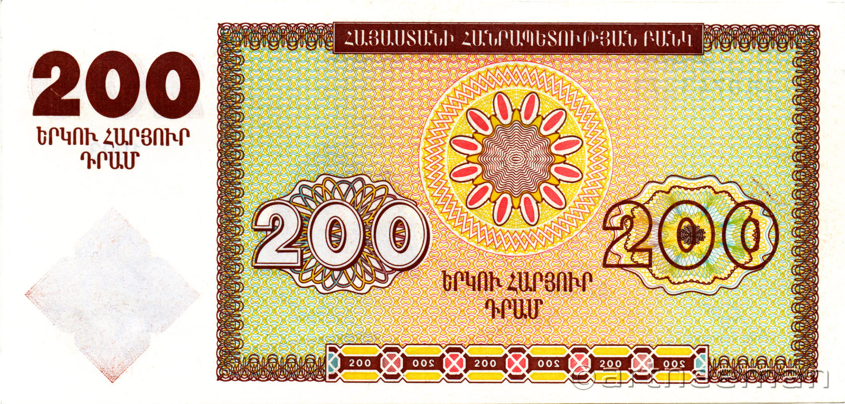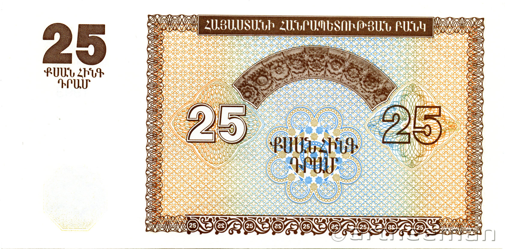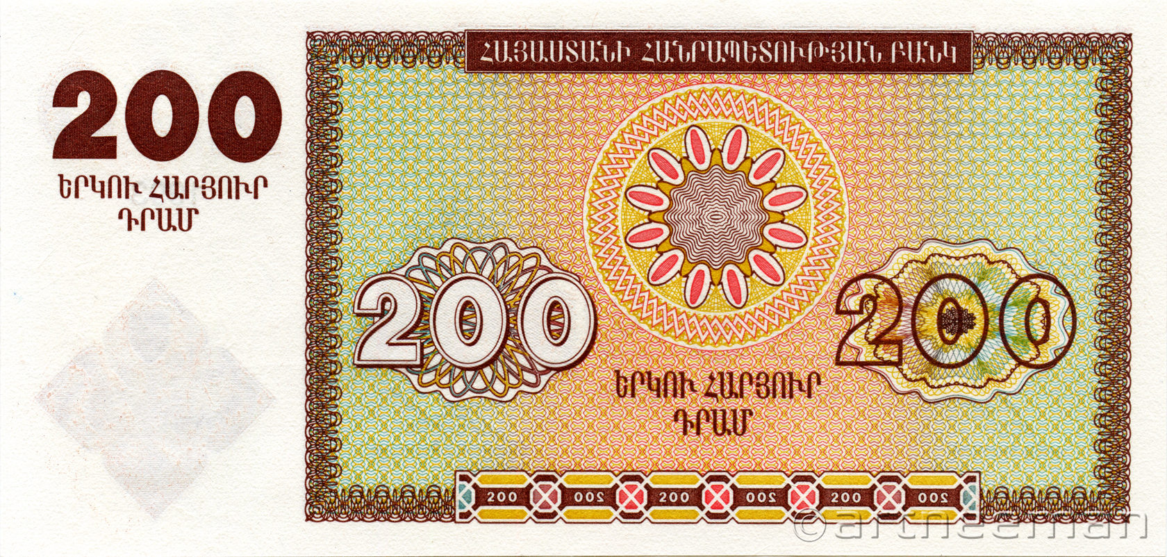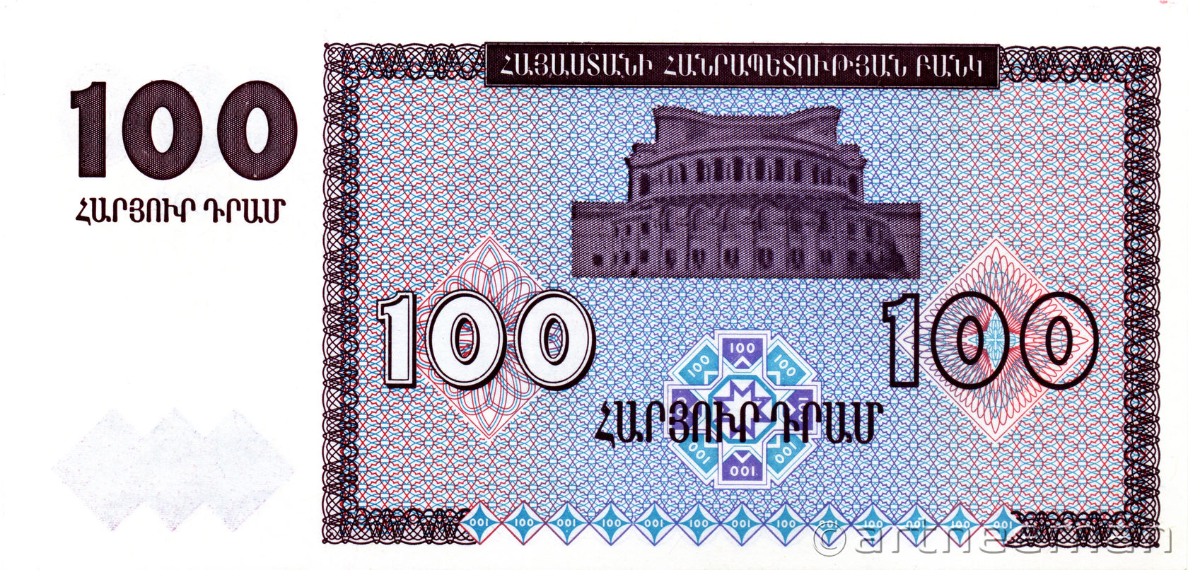 Банкнота серии 1993-1995 Issue, выпуск 1993 года (серия ԵԱ)