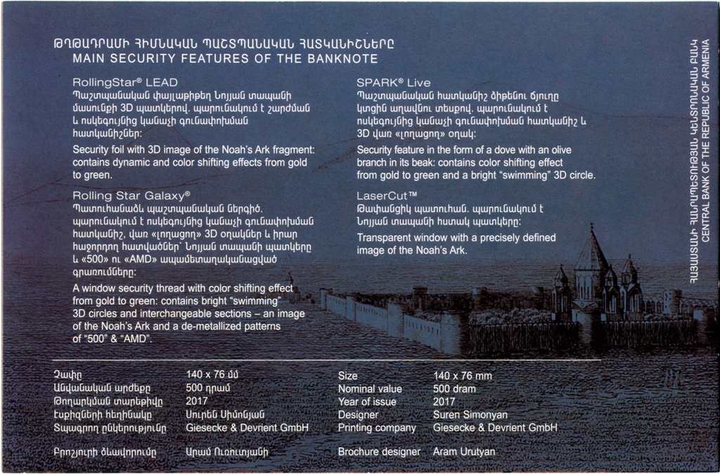 500 Dram 2017 [P 60] "Noah's Ark" Collector Banknote