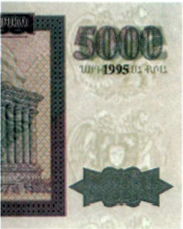 На аверсах банкнот, рядом с портретами, даны голограммы переменного цвета, обозначающие профессиональную деятельность человека, который изображён на банкноте.
