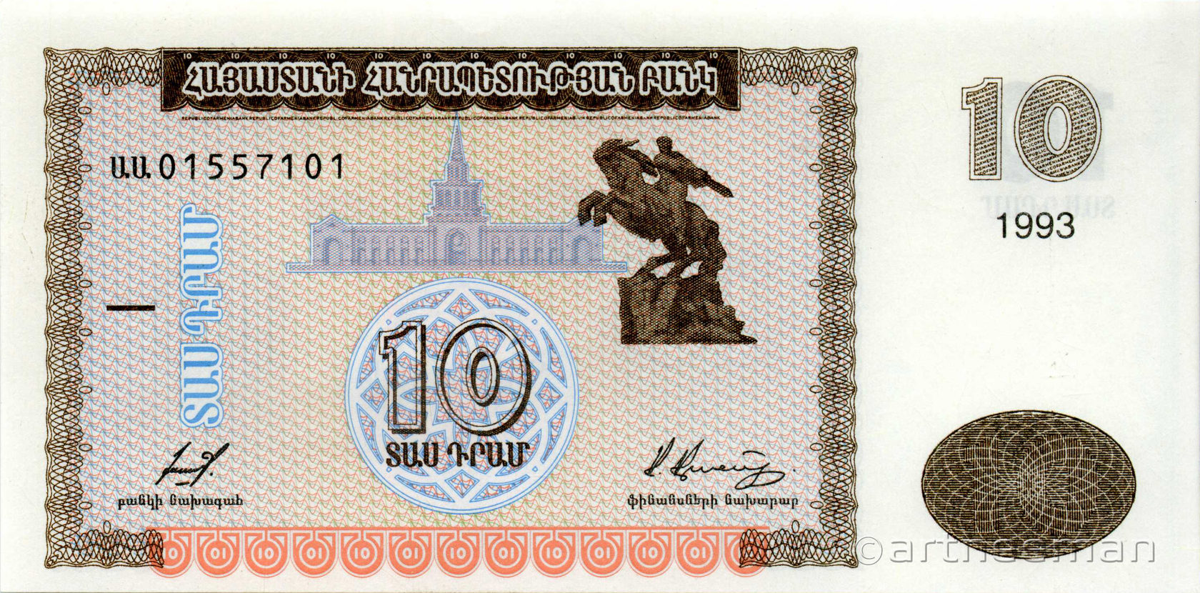 Банкнота серии 1993-1995 Issue, выпуск 1993 года (серия ԴԱ)