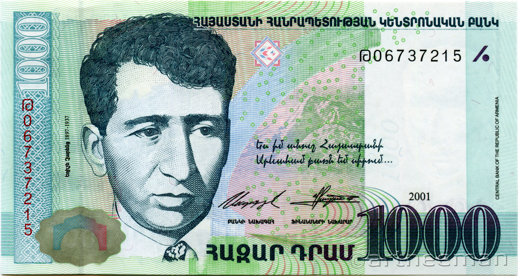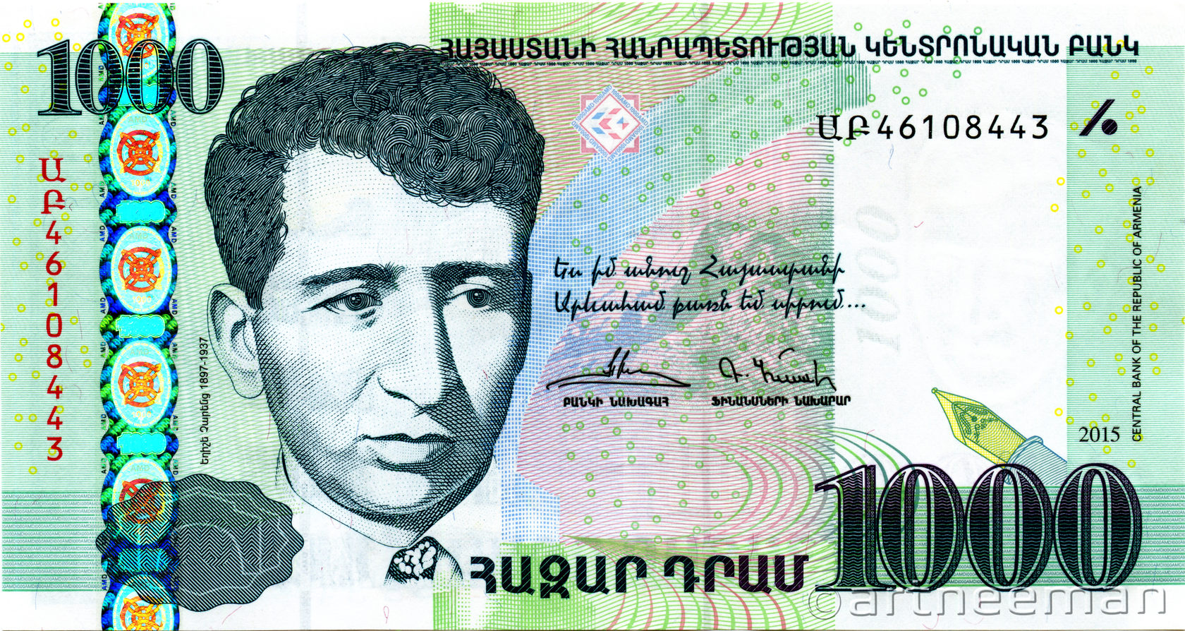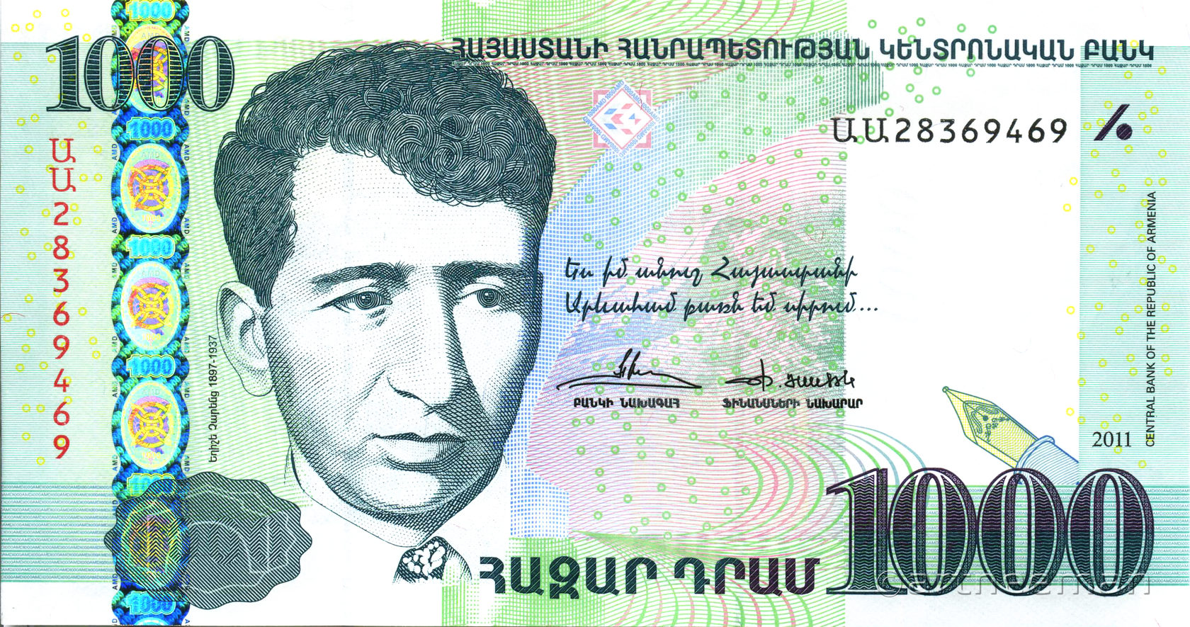 Исключительное право выпуска валюты принадлежит Центральному банку Республики Армения. Государственная валюта Республики Армения находится в обращении с 22 ноября 1993 года. Ежегодно в этот день отмечается День драма.