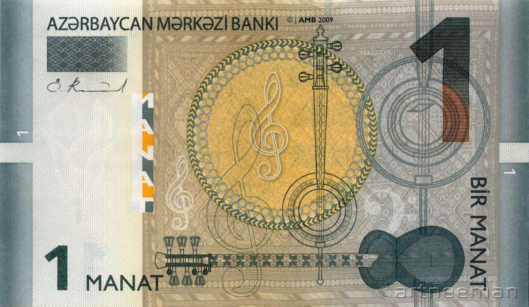 Банкнота 1 манат 2009 года является модификацией банкноты 2005 года. В 2009 году Национальный Банк Азербайджана изменил слова «Azərbaycan Milli Bankı» («Национальный Банк Азербайджана») на «Azərbaycan Mərkəzi Bankı» («Центральный Банк Азербайджана»)