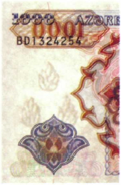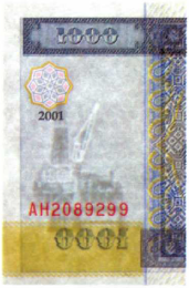 Оборотная сторона: Обозначение номинала «MIN 1000 manat».