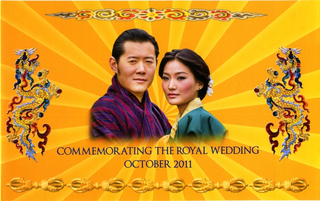 Лицевая сторона: Его Королевское Высочество, Гьялси, Джигме Намгьел Вангчук, Король Джигме Кхесар Намгьял Вангчук и королева Аши Джецун Пема Вангчук.