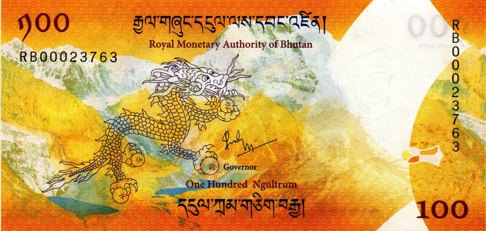 RMA (Королевское валютное управление Бутана) выпустила новую памятную банкноту 5 февраля 2017 года. В продажу банкнота была выпущена 5 февраля 2018 года. Банкнота не предназначена для обращения и операций.