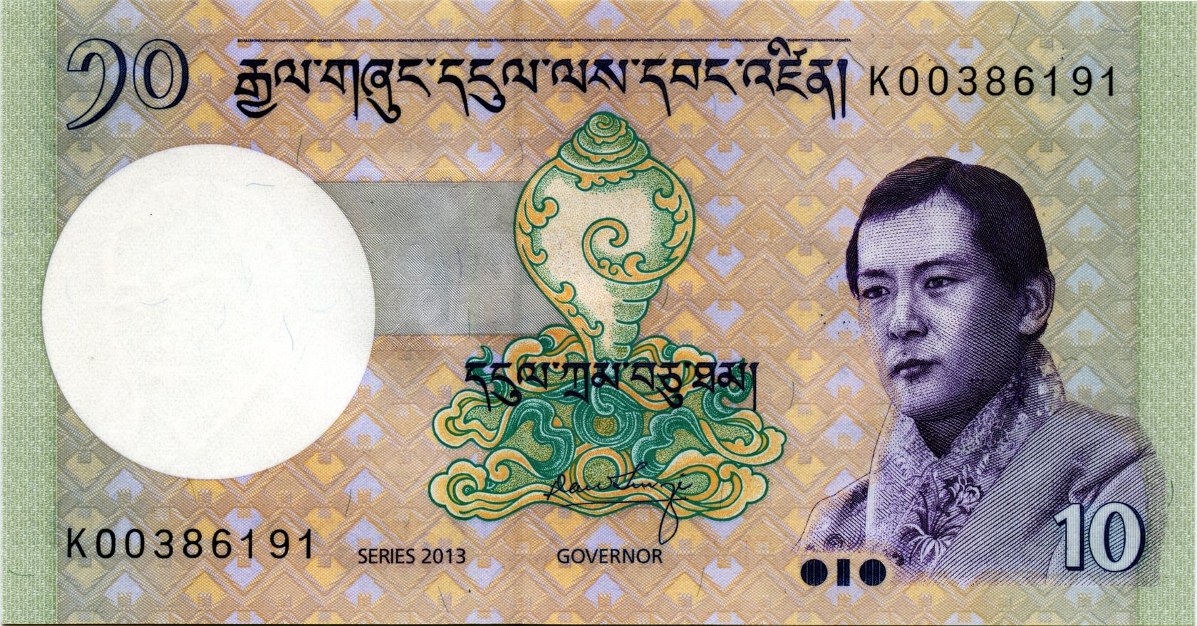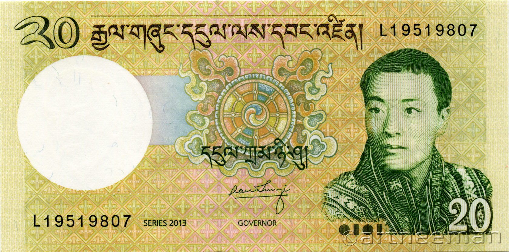 Водяной знак: Джигме Сингье Вангчук с гальваническими завитками