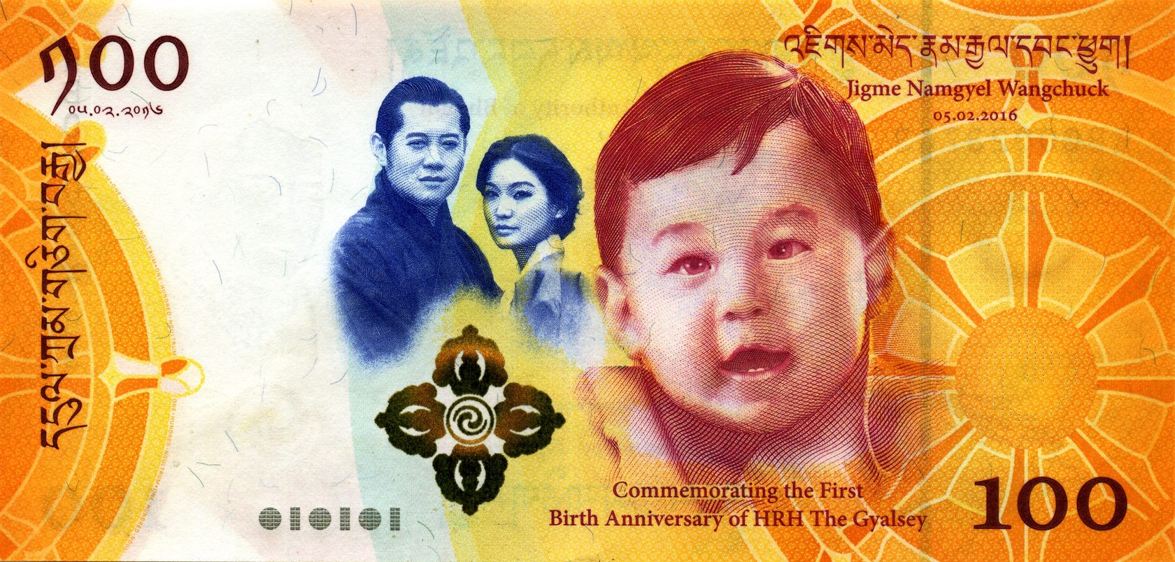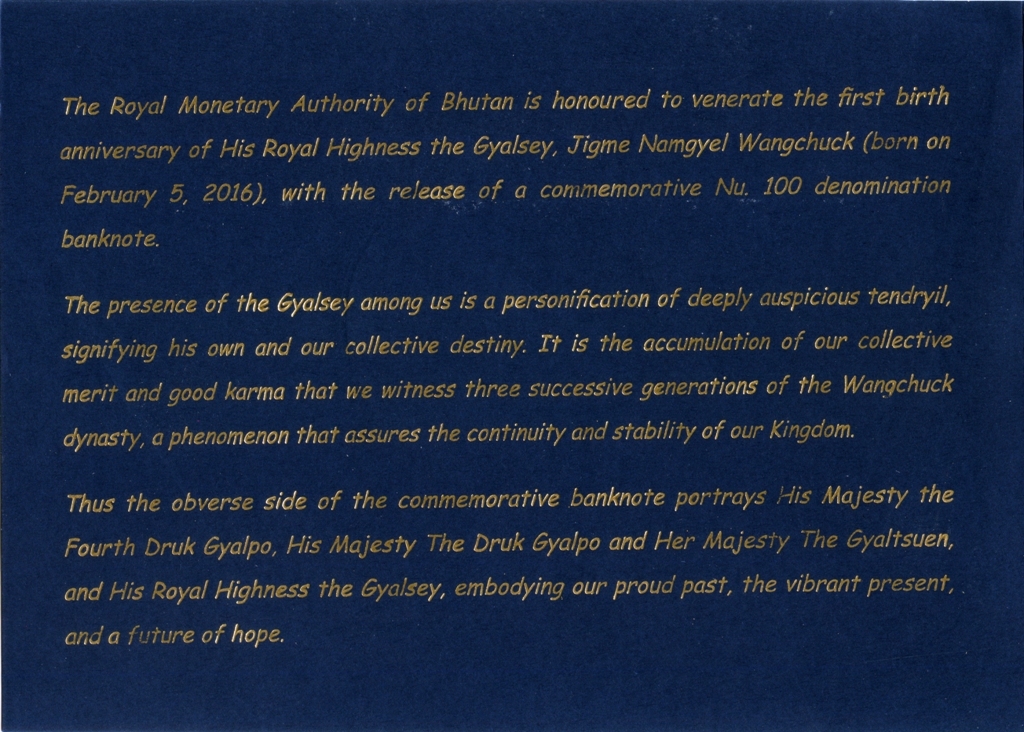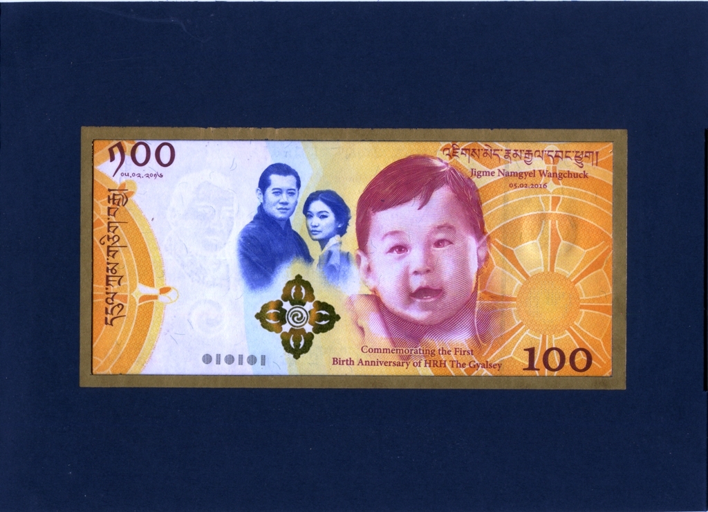 Памятная банкнота в честь Первой годовщины Рождения Его Королевского Высочества, Гьялси, Джигме Намгьел Вангчук,