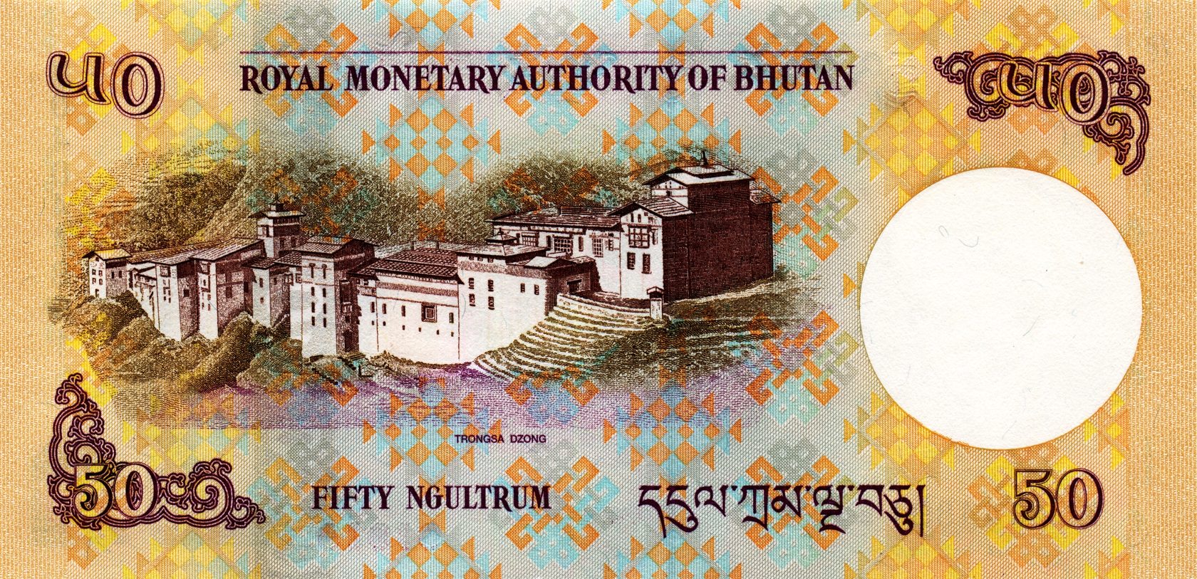 Оборотная сторона: Тронгса-дзонг или Тонгса-дзонг — крепость в центральной части Бутана, вокруг которой образовался город Тонгса, с давних времён являлся столицей исторической провинции провинции Тронгса. Название означает «новое поселение».