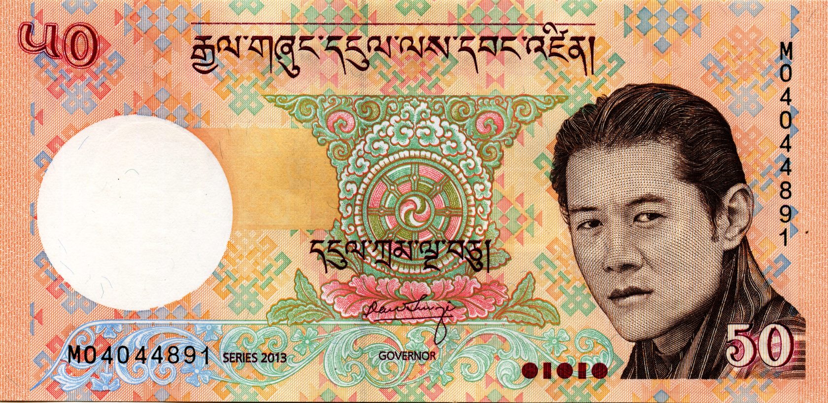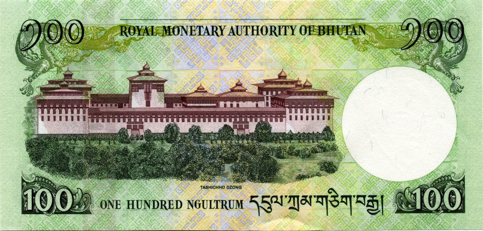 Водяной знак: Надпись по всей банкноте 'ROYAL MONETARY AUTHORITY OF BHUTAN'