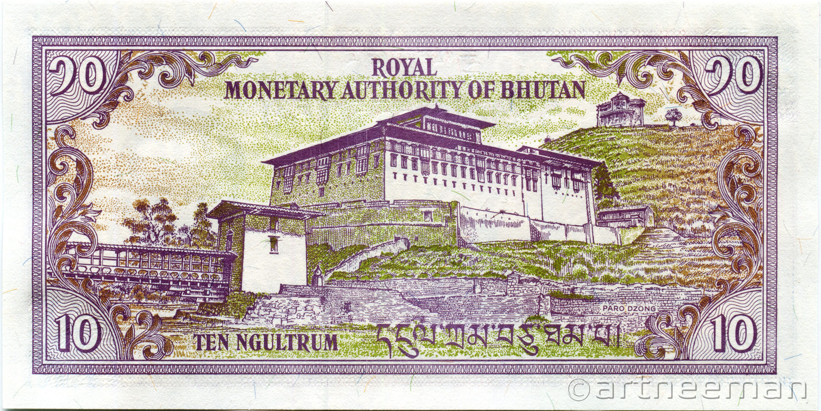 Оборотная сторона: Ринпунг-дзонг (также Паро-дзонг) — большой монастырь буддийской школы Друкпа Кагью, а также крепость в городе Паро в Бутане. Здесь же расположена администрация района Паро.