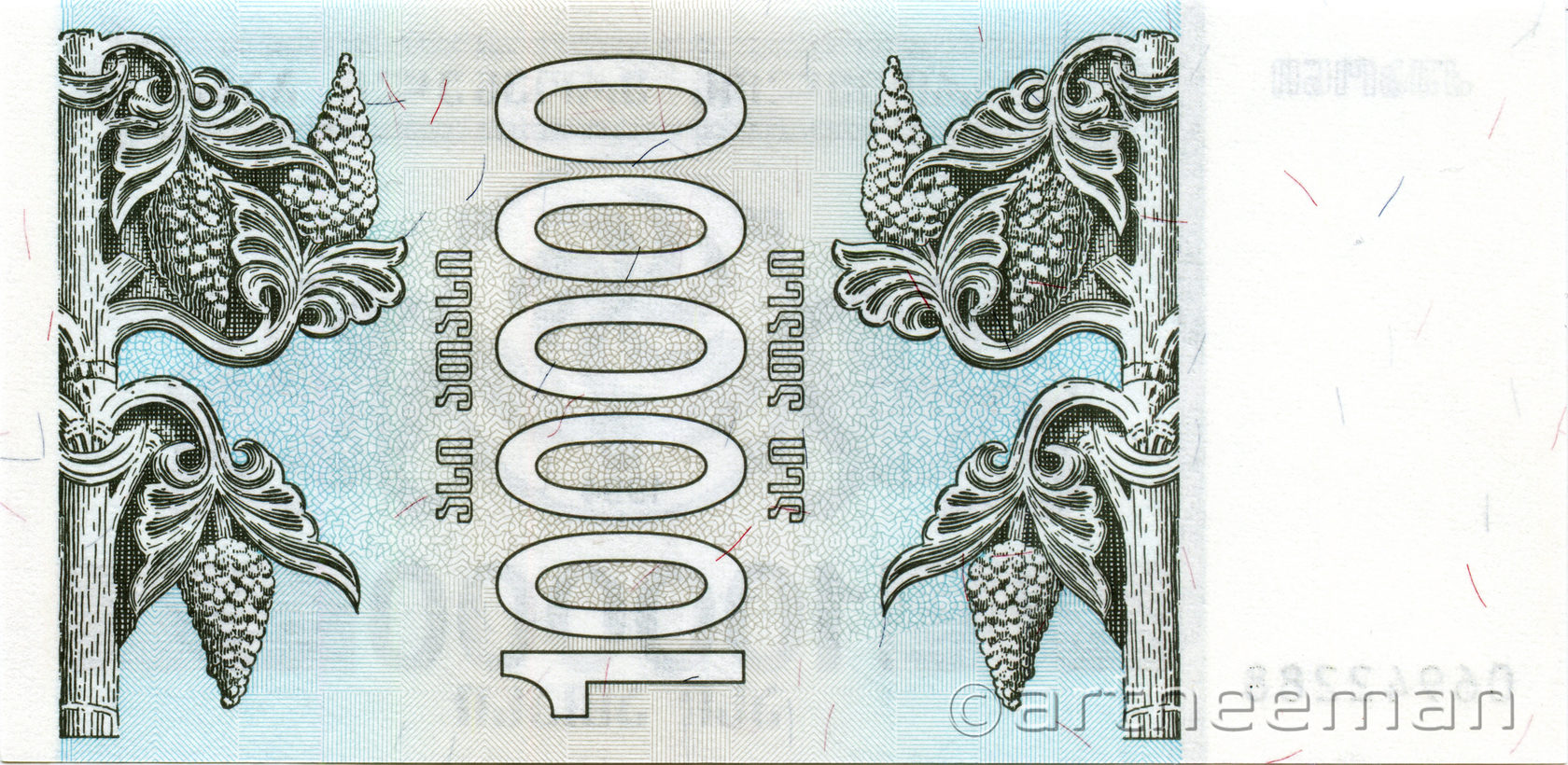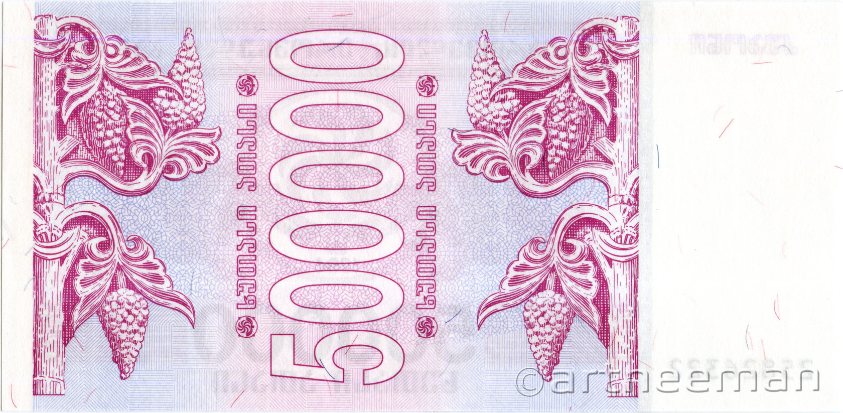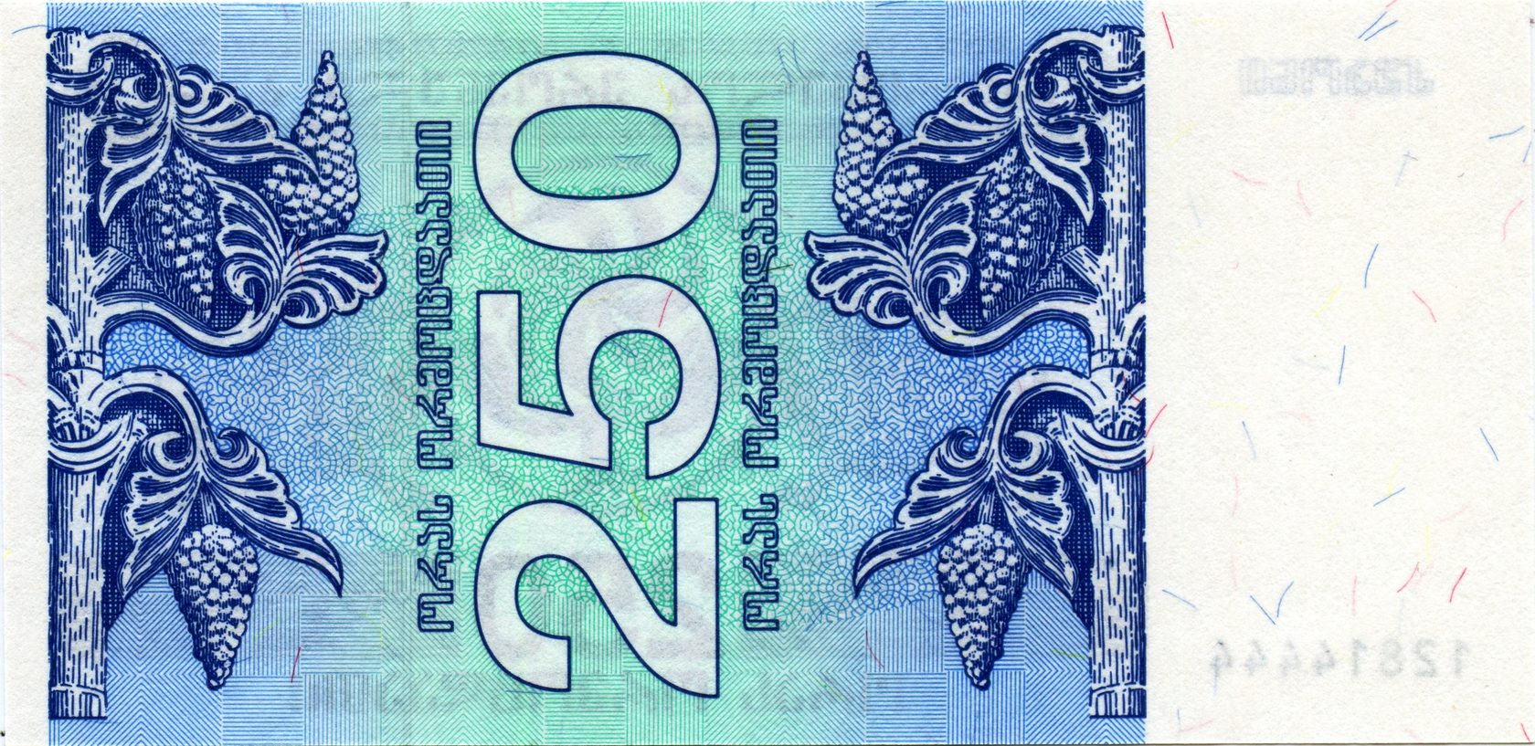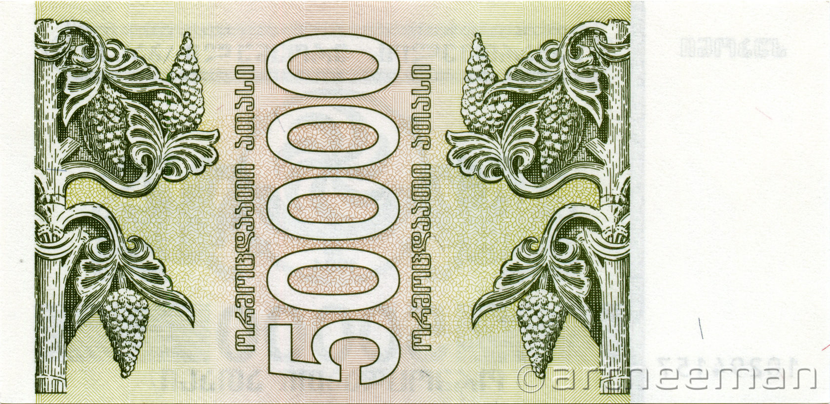Оборотная сторона (на всех банкнотах): Номинал в вертикальной ориентации, окруженный гроздьями винограда.