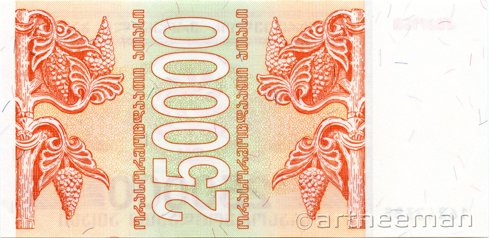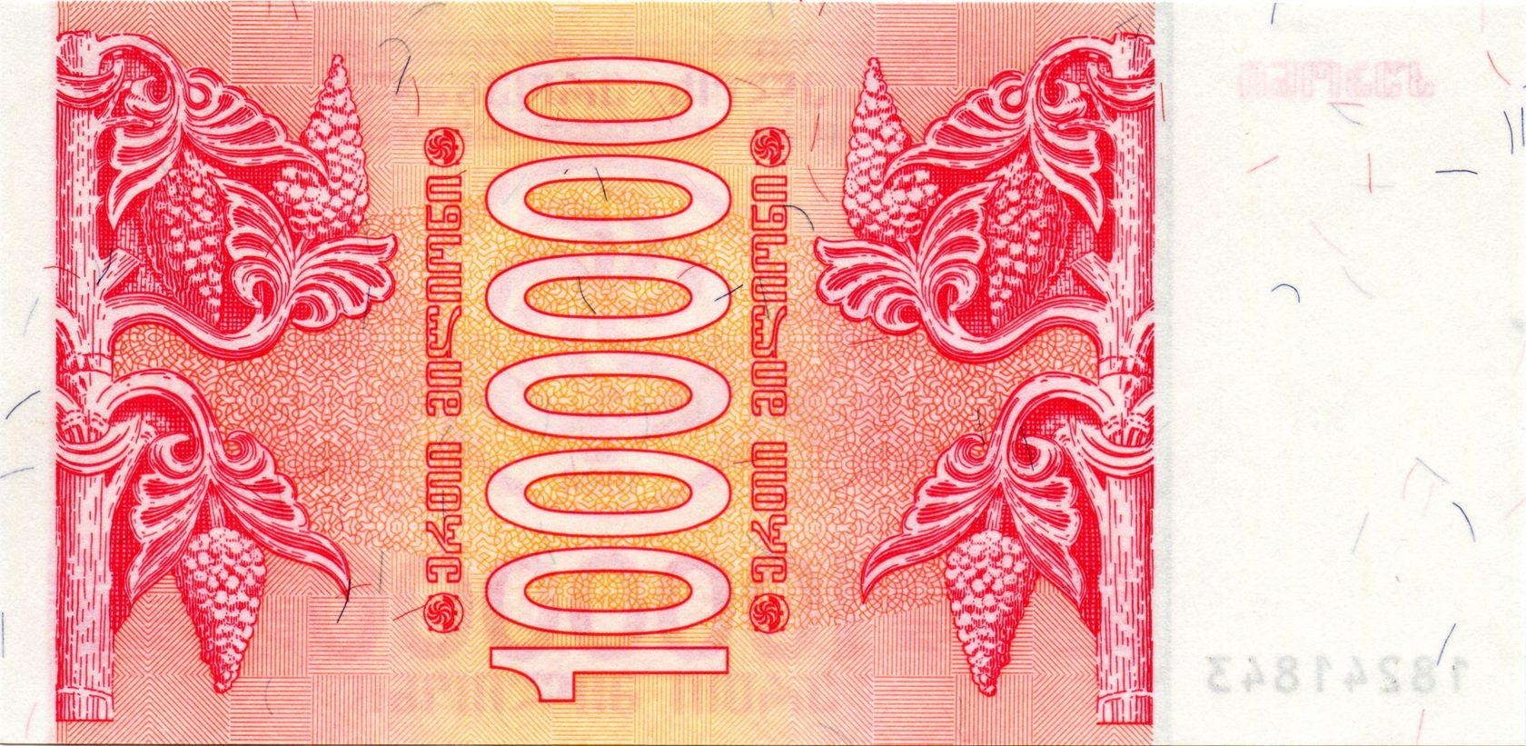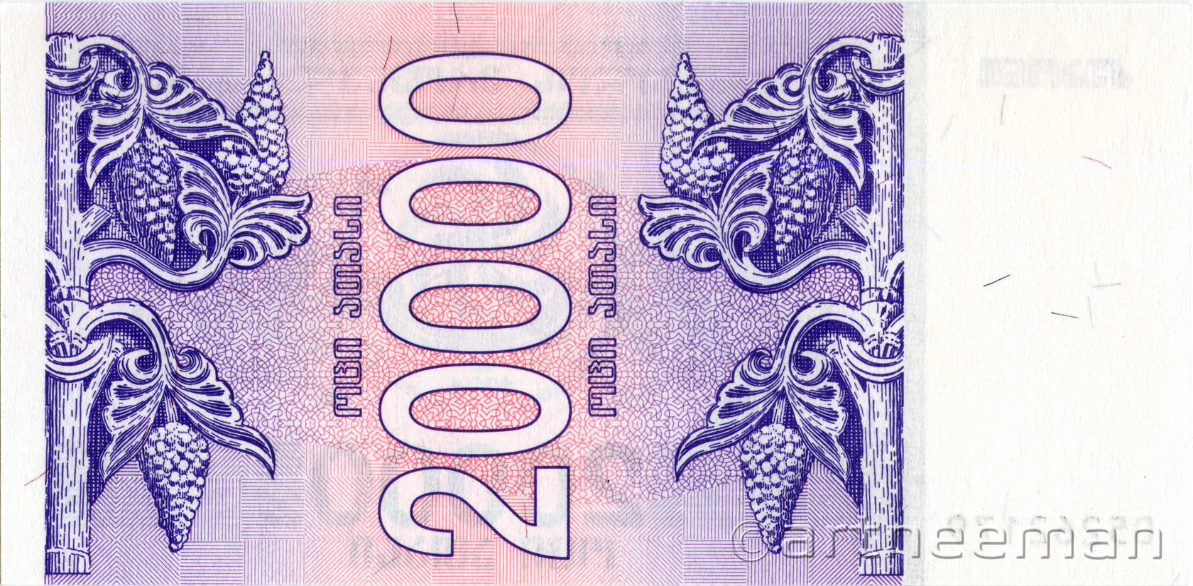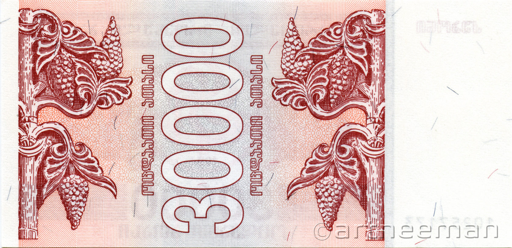 Оборотная сторона (на всех банкнотах): Номинал в вертикальной ориентации, окруженный гроздьями винограда.