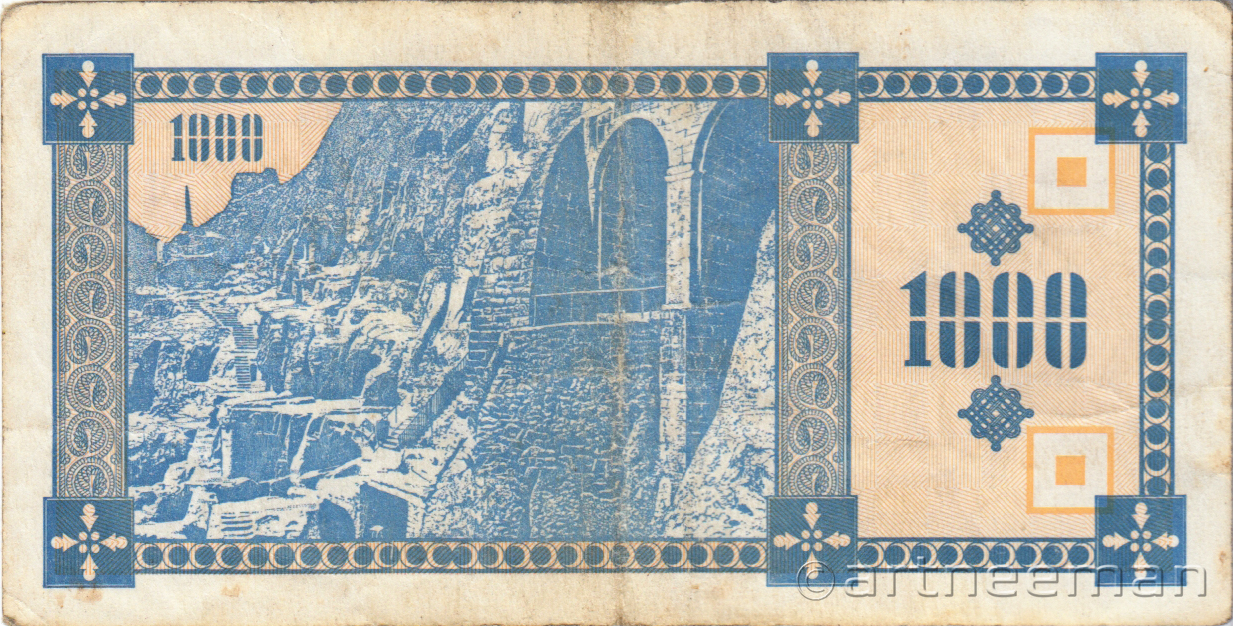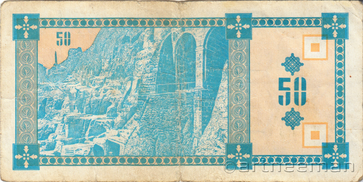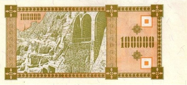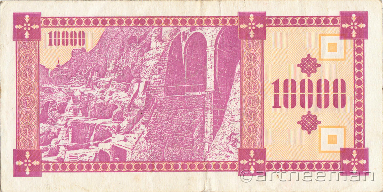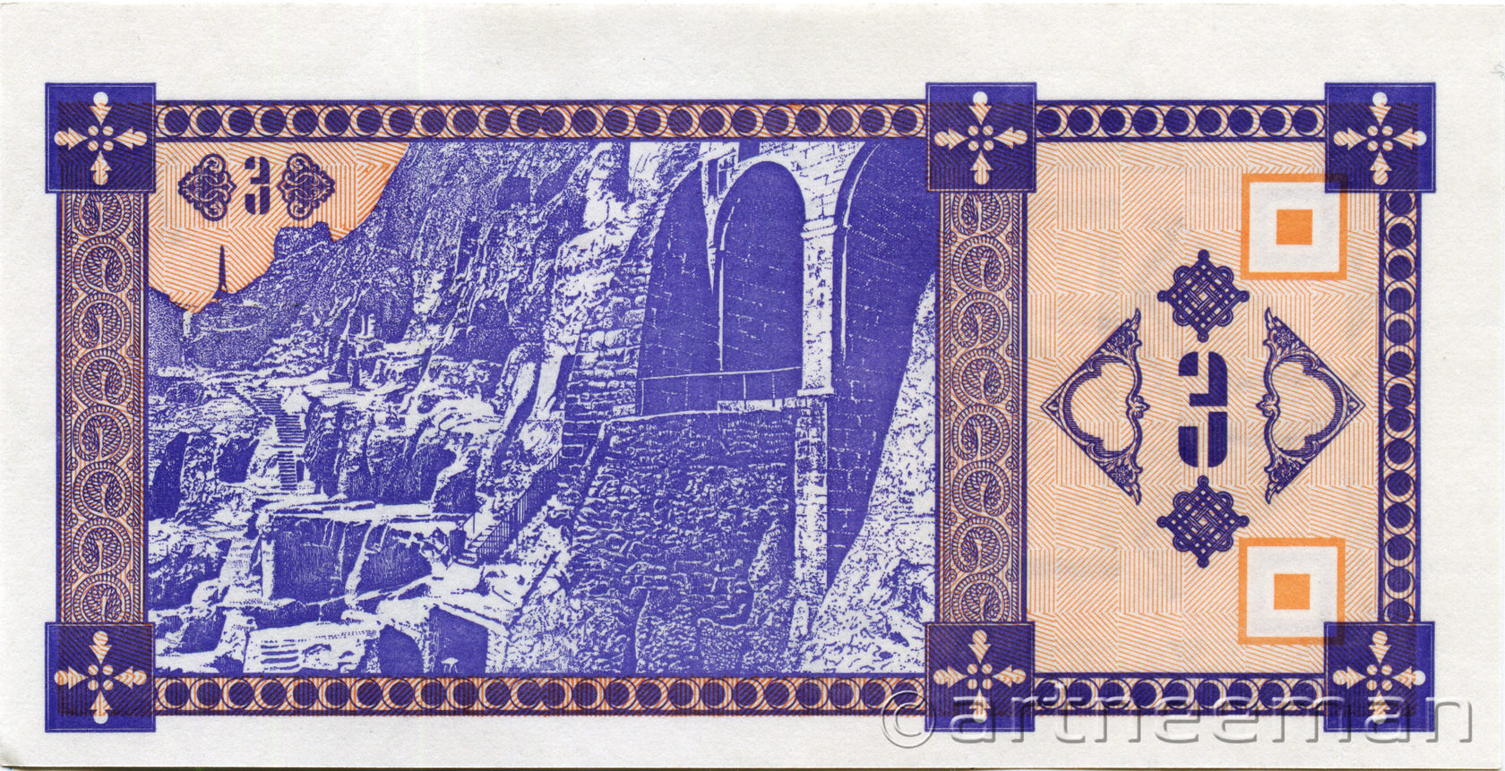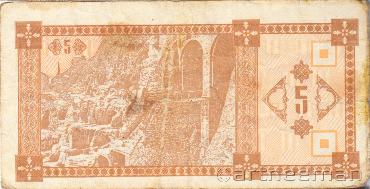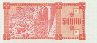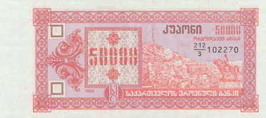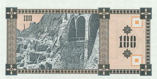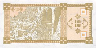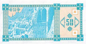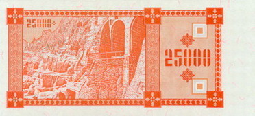 Оборотная сторона (на всех банкнотах): Пещерный город Вардзия в горе Эрушели около посёлка Аспиндза