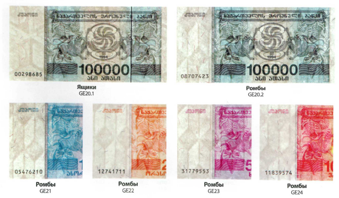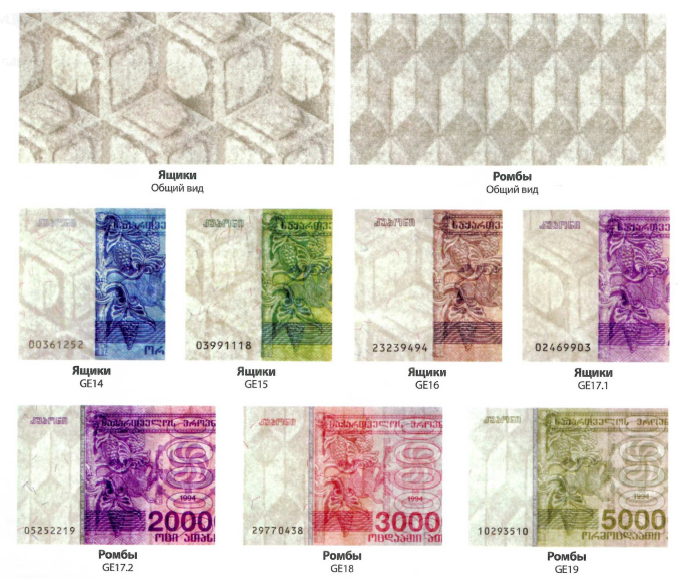 Водяной знак (на всех банкнотах): Ромбы и четырехугольники
