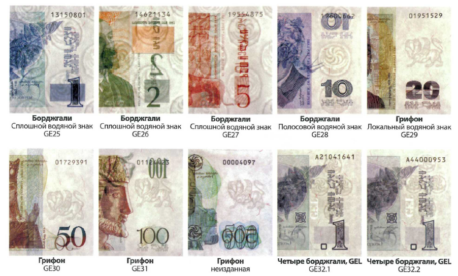 Водяной знак: Логотип Национального банка Грузии и надпись 'GEL'