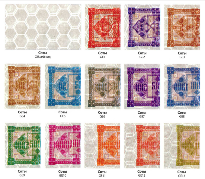 Водяной знак (на всех банкнотах): Повторяющиеся шестиугольники