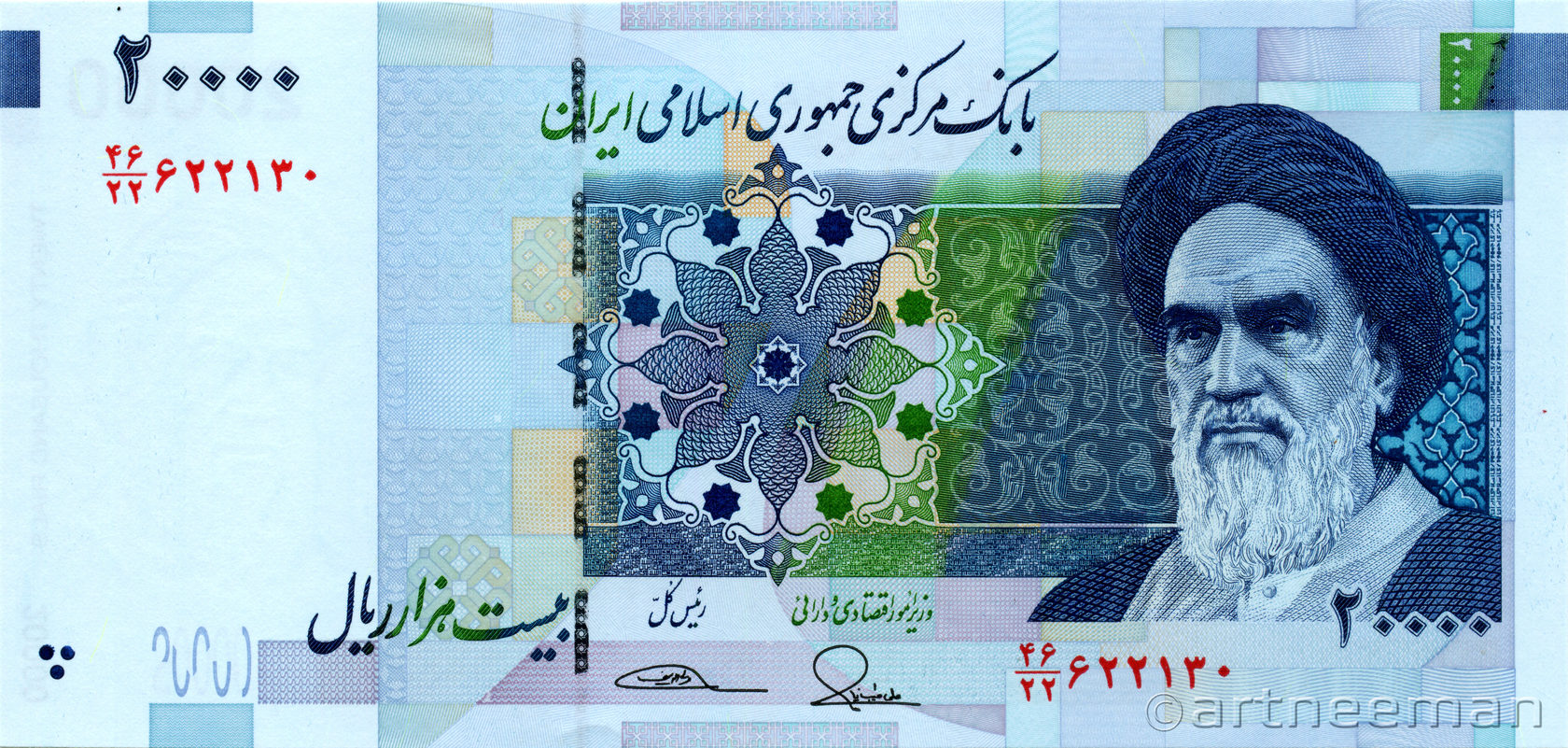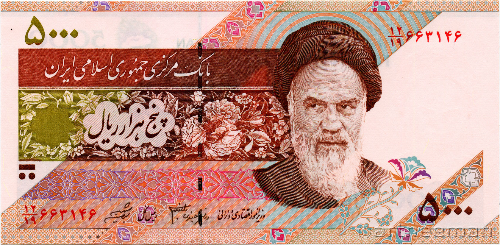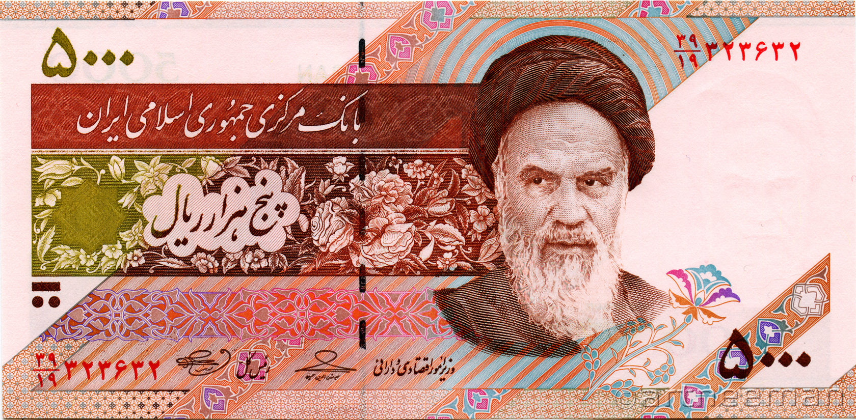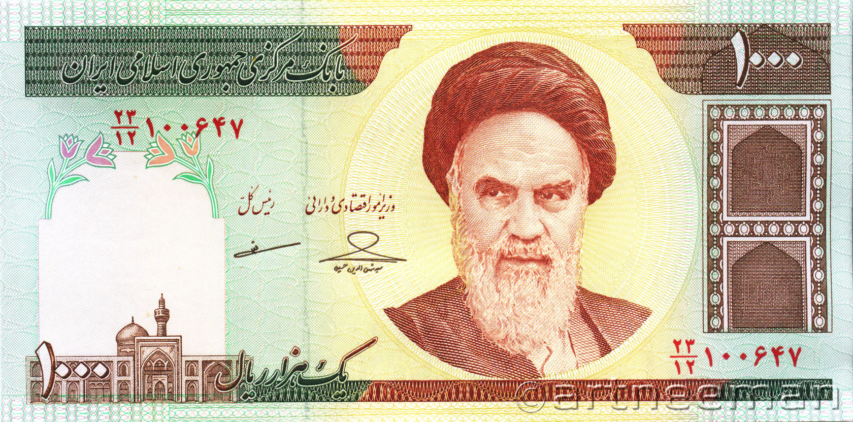 № по Краузе (Pick): [P 136e] Signature 31. Watermark: Khomeini.