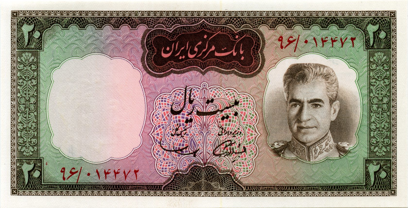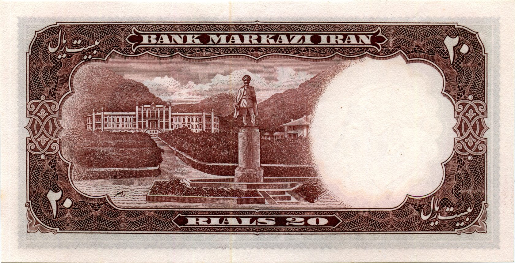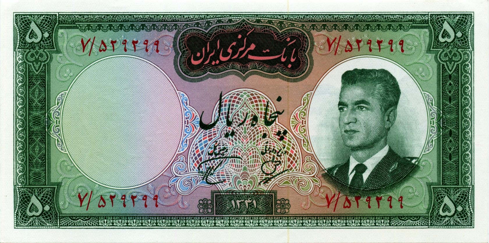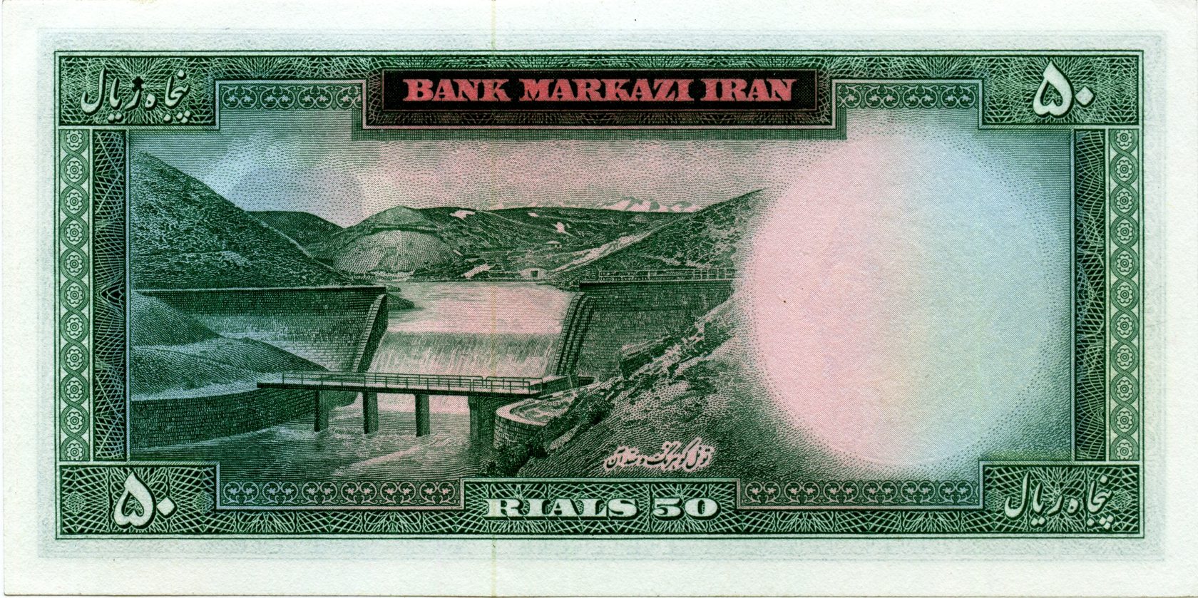№ по Краузе (Pick): [P 73a] Small date 2.5mm high. Вариант подписей №8: Ali Ashghar Pouhomayoun (глава Центробанка) и Abdul Hossein Behnia (министр финансов).