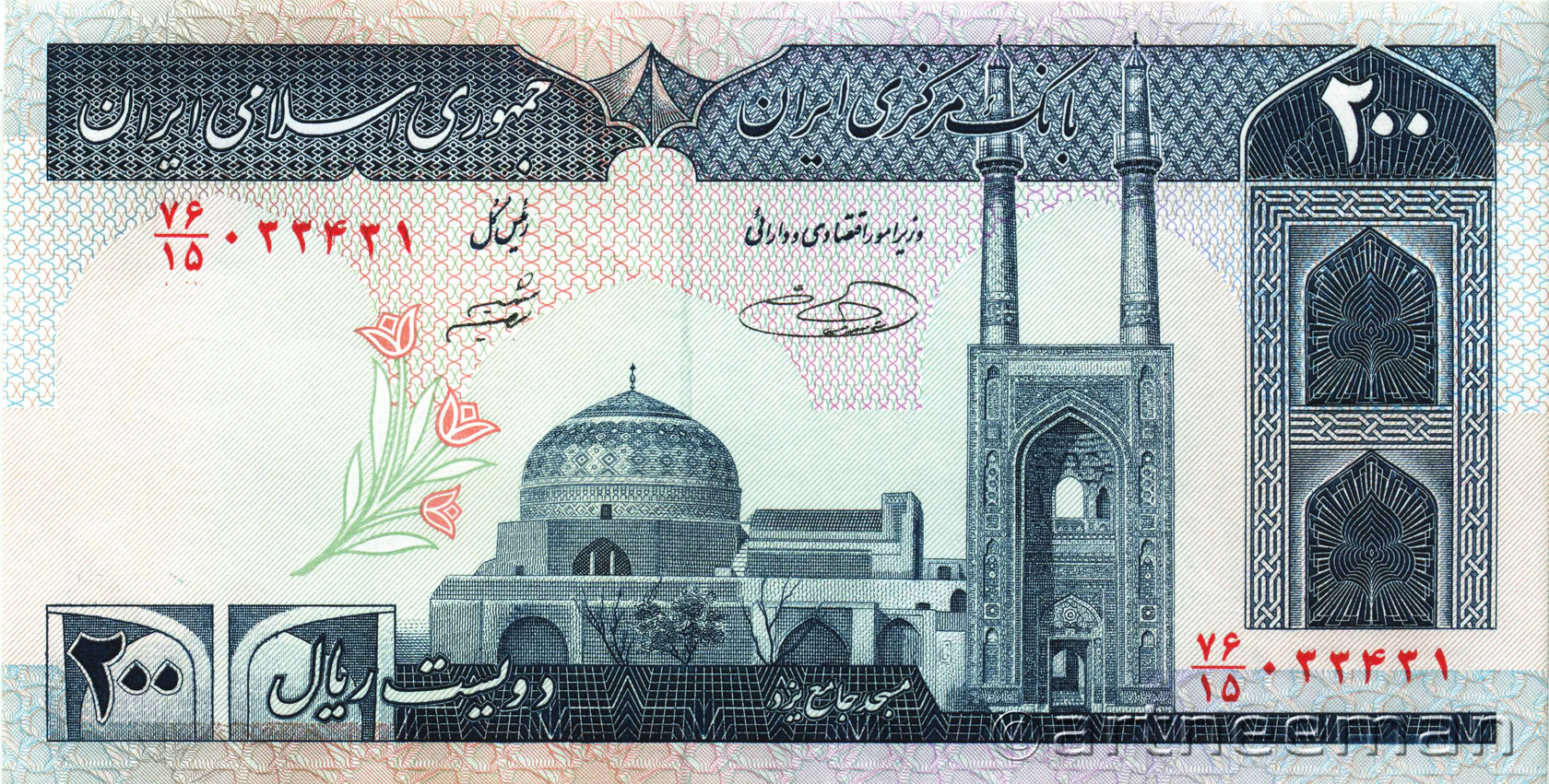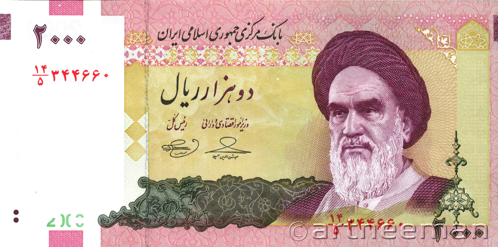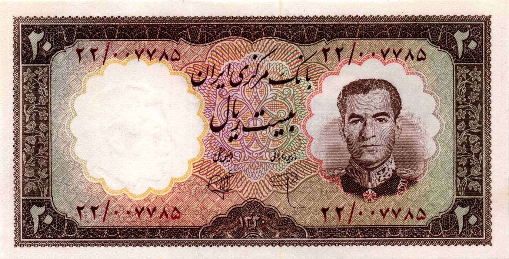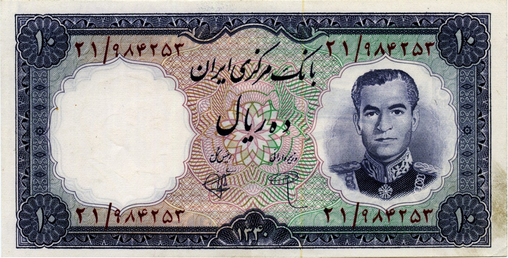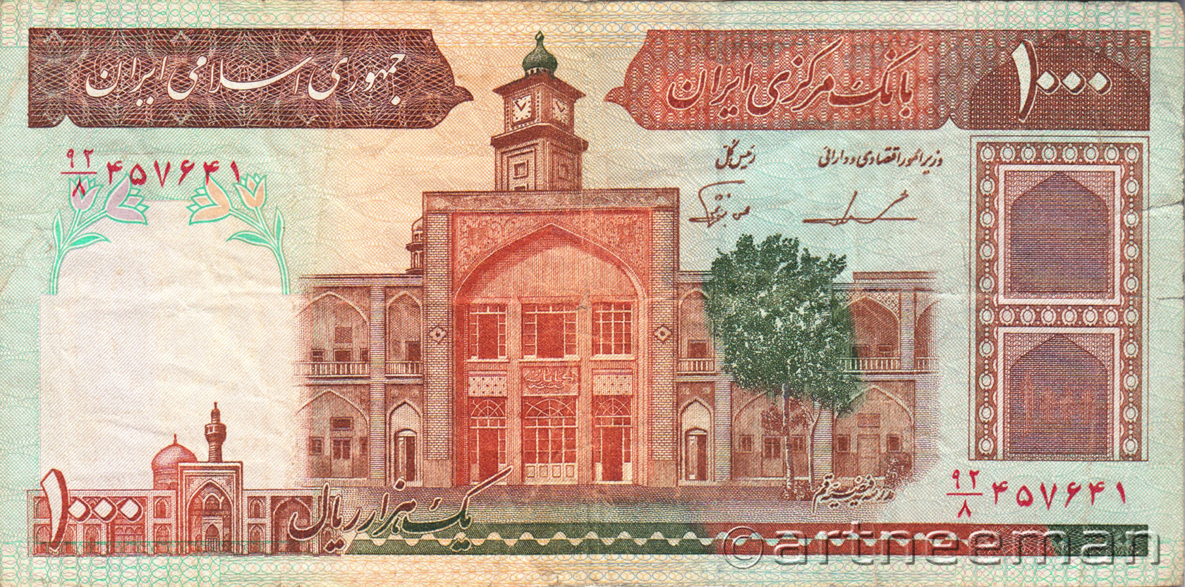 № по Краузе (Pick): [P 73a] Small date 2.5mm high. Вариант подписей №8: Ali Ashghar Pouhomayoun (глава Центробанка) и Abdul Hossein Behnia (министр финансов).