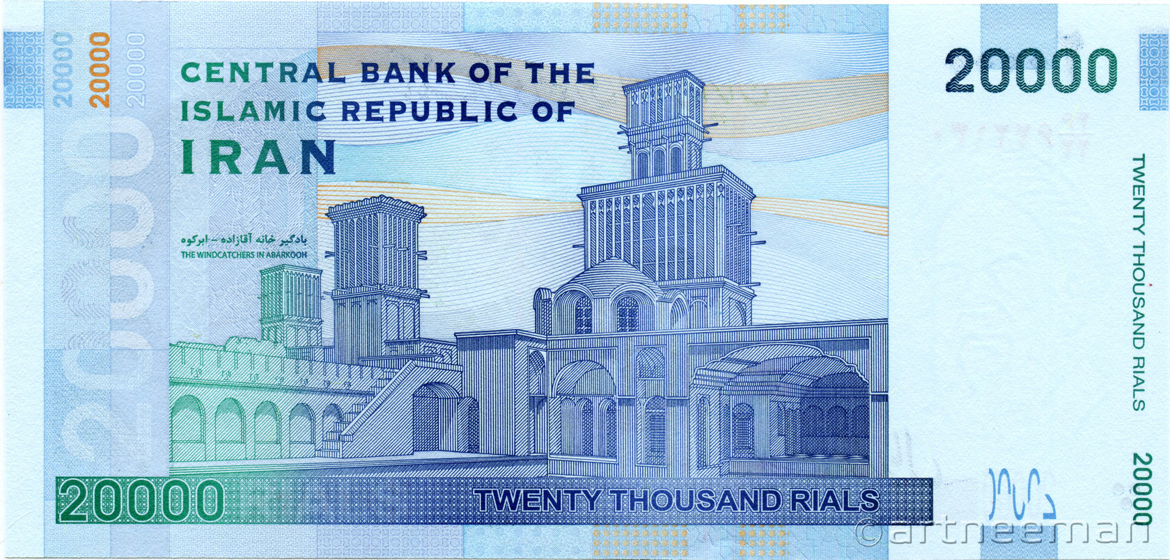 Оборотная сторона: Особняк Агазаде с бадгирами - национальный исторический памятник в Иране. Бадгир — традиционный персидский, иранский архитектурный элемент, служащий для вентиляции зданий и поддержания нормального температурного баланса в них. Бадгиры в этом особняке считаются одними из лучших примеров вентиляции зданий в мире. Главный багдир этого особняка высотой 18 метров, занимает площадь 18 квадратных метров, в нём 19 вентиляционных отверстий, которые внутренне соединены со вторым багдиром, что позволяет регулировать вентиляцию даже в безветрянную погоду.