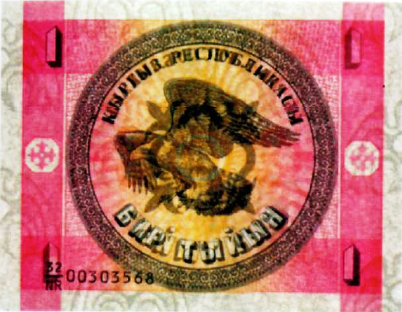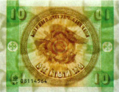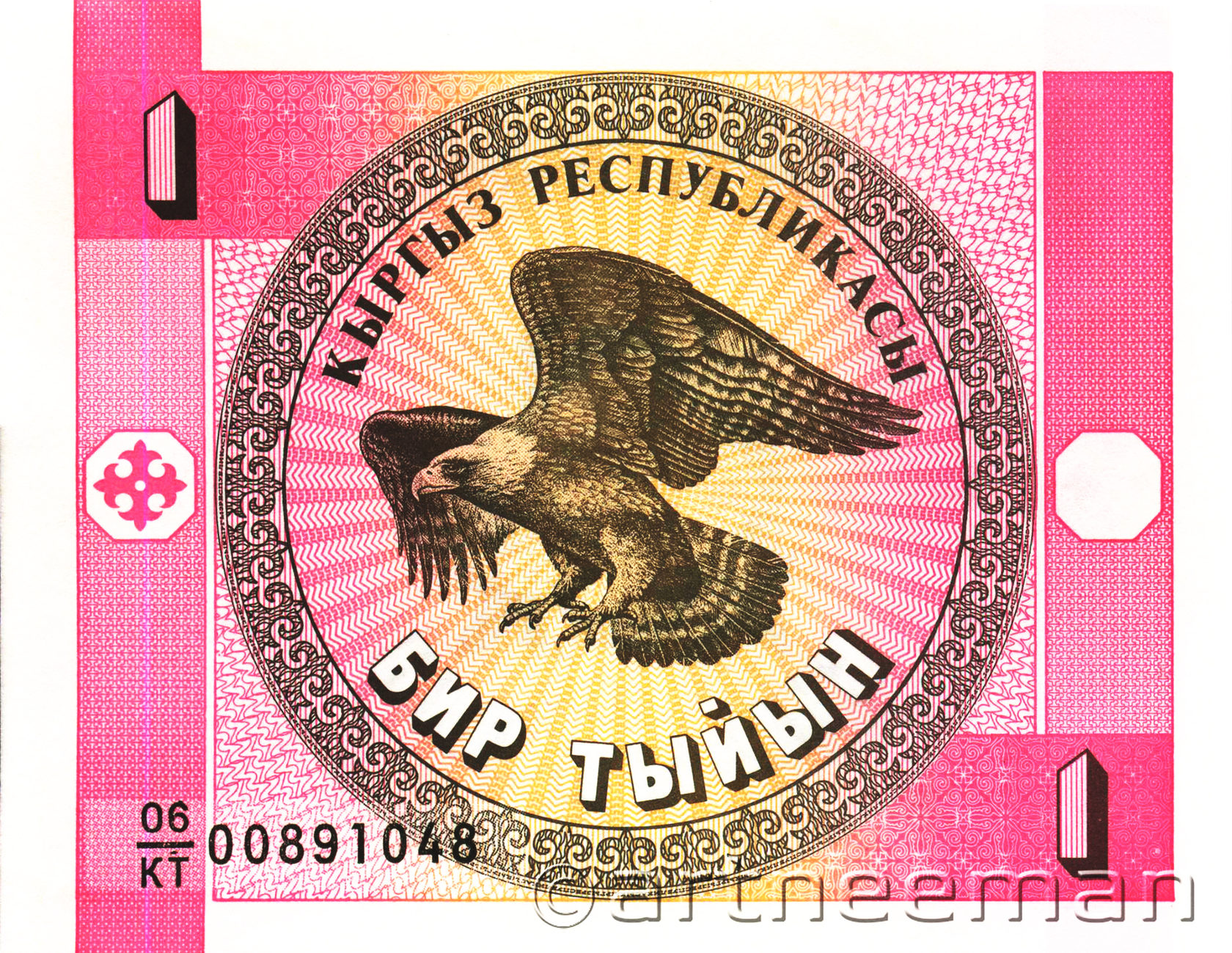 КЫРГЫЗ РЕСПУБЛИКАСЫKYRGYZ RESPUBLIKASYND (1993) Fractional "Tyiyn" Issues № по Краузе (Pick): [P 1b] Watermark: pattern. Serial prefix letters: KT.