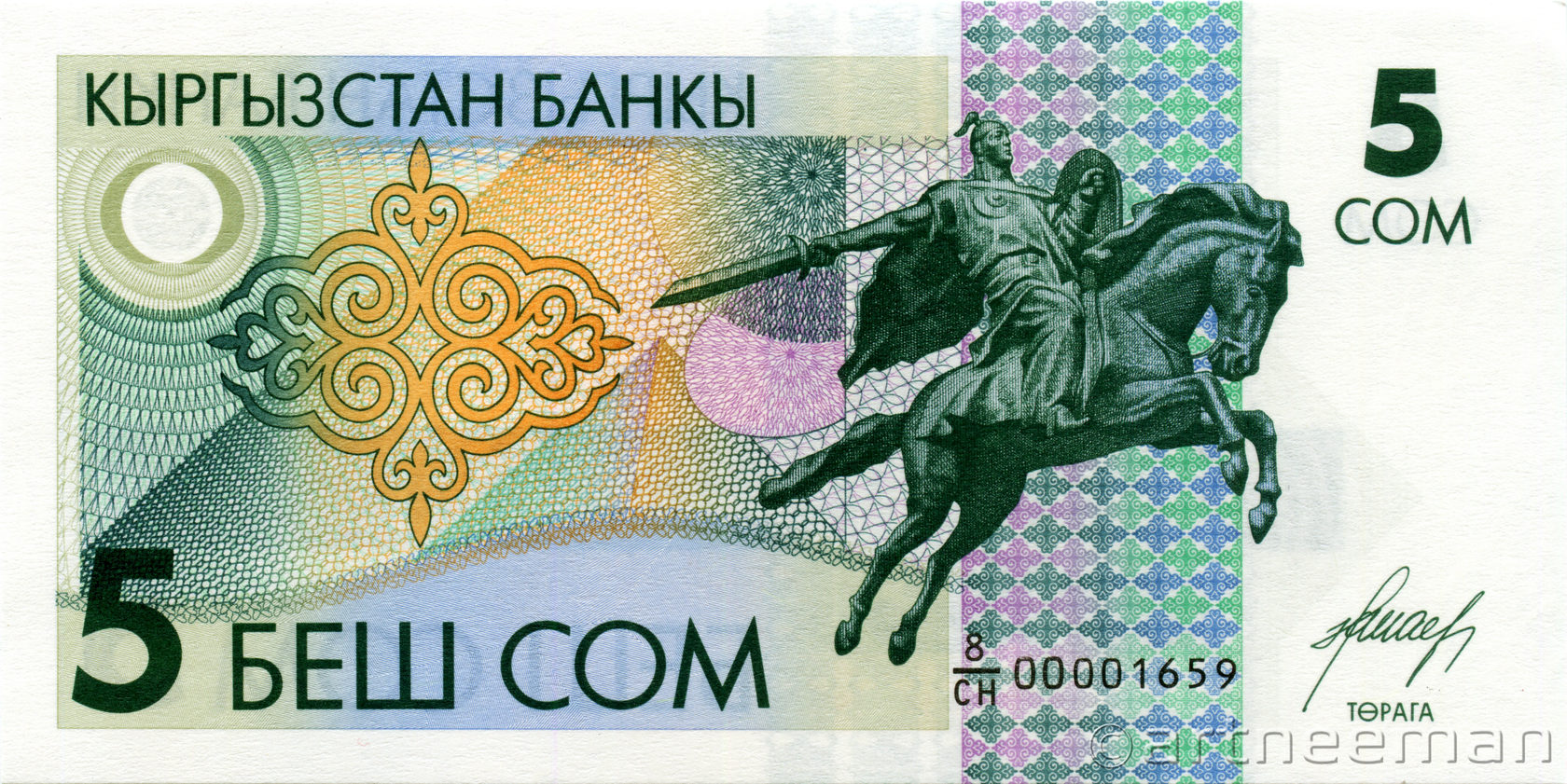 № по Краузе (Pick): [P 5] Serial prefix letters: BH, CH, DA, IK, NR, OH, TS. Подпись: Кемельбек Нанаев.
