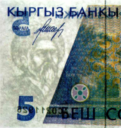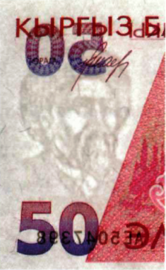 Водяной знак: Портрет Токтогула Сатылганова и цифры номинала