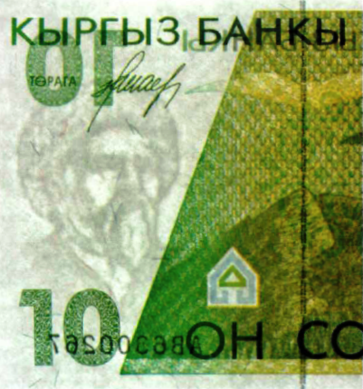 № по Краузе (Pick): [P 10a] Serial prefix letters: AA, AB, AC, AD, AE, AF, AG, AH. Подпись: Кемельбек Нанаев.