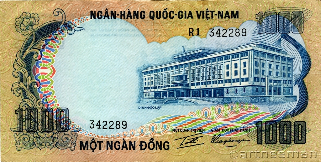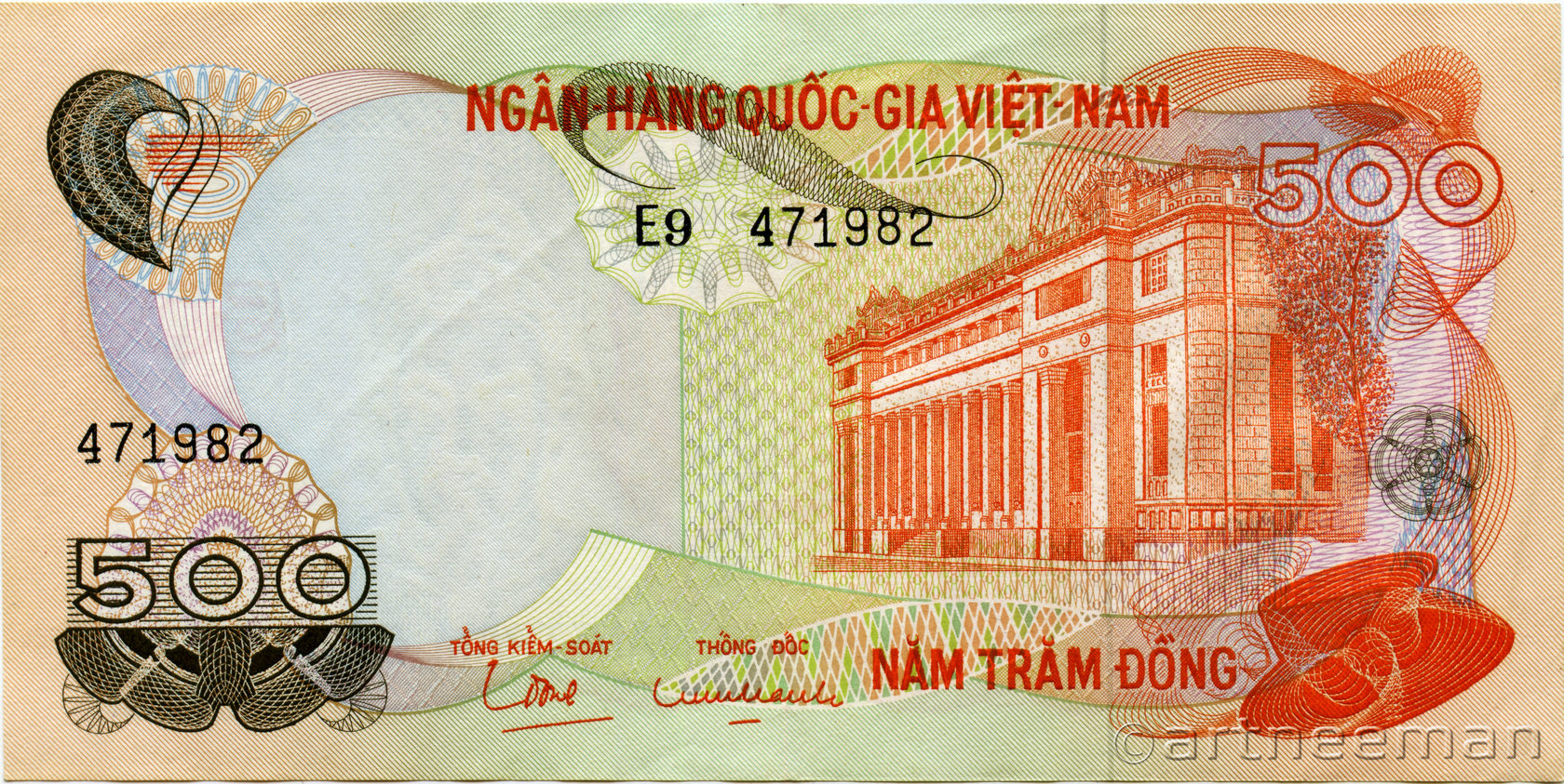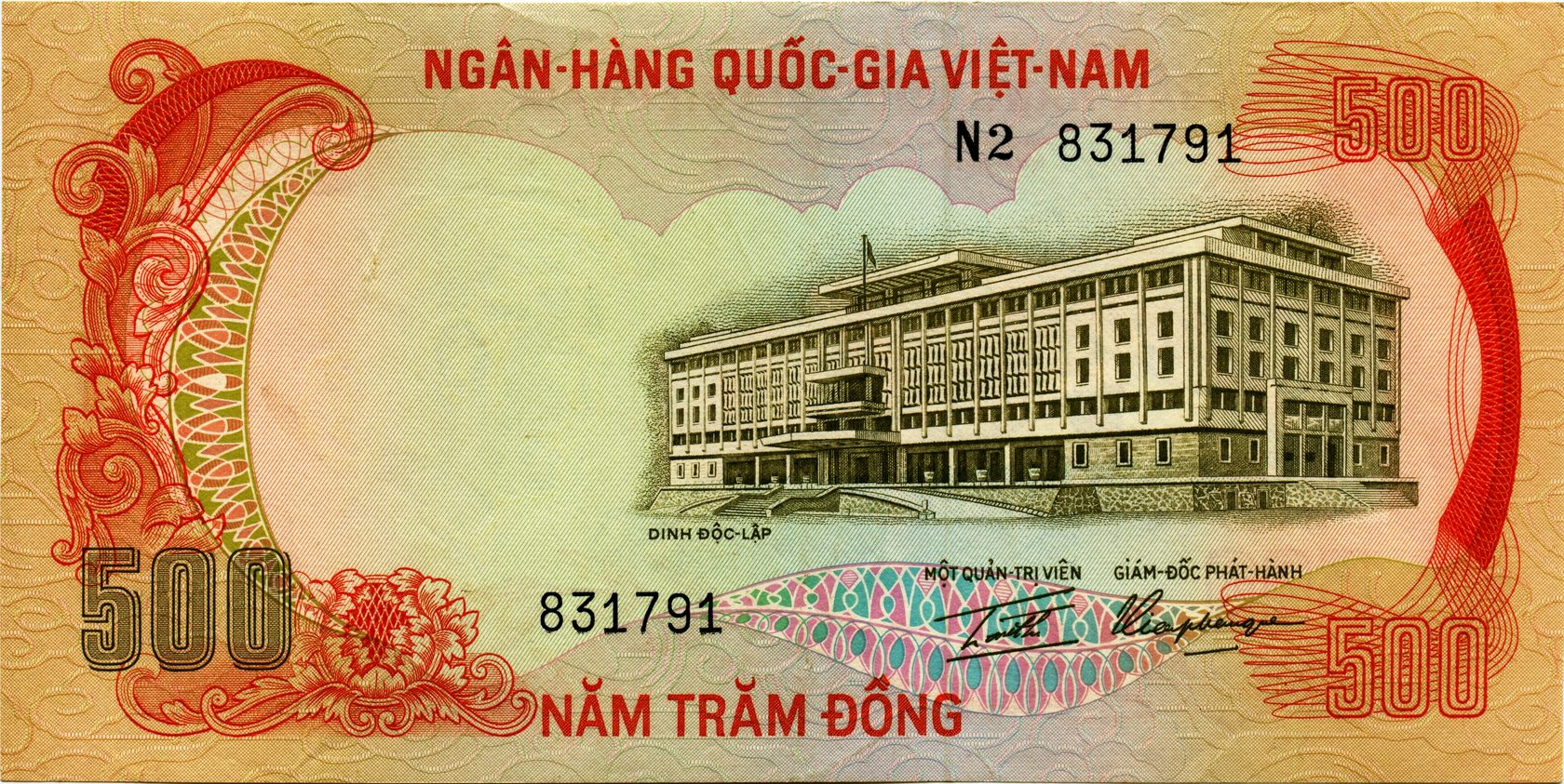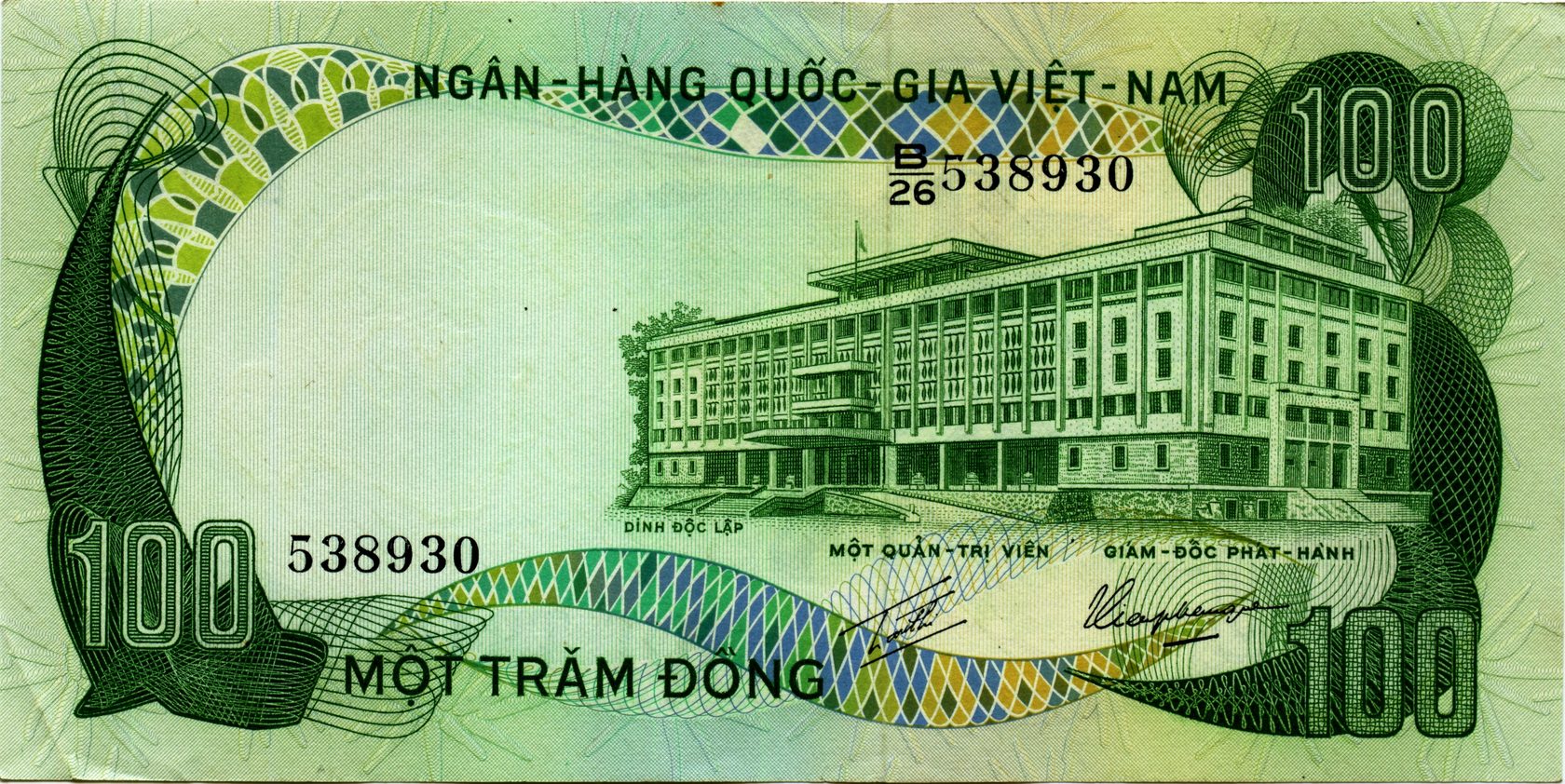 Лицевая сторона: Дворец Независимости (1966), также известный как Дворец Воссоединения (1975), построенный на месте бывшего дворца Нородом, является достопримечательностью Сайгона, Вьетнам. Он был спроектирован архитектором Нго Виттху и был домом и местом работы президента Южного Вьетнама во время войны во Вьетнаме.
