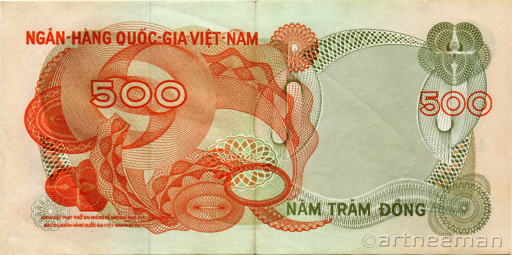 Лицевая сторона: Храм короля Хунга (или Храм памяти), был построен в 1927-1929 годах под названием Temple du Souvenir Annamite («Аннамитский храм памяти»), прежде всего в память о вьетнамских солдатах, погибших во время Первой мировой войны; Орнаментальный гильошированный узор и номинал.